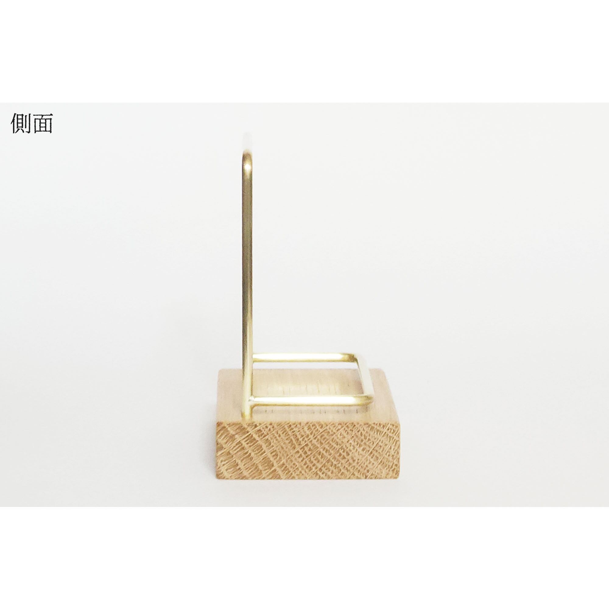 真鍮とホワイトオークのカードスタンド(Fタイプ 彫金 縦置き) No36