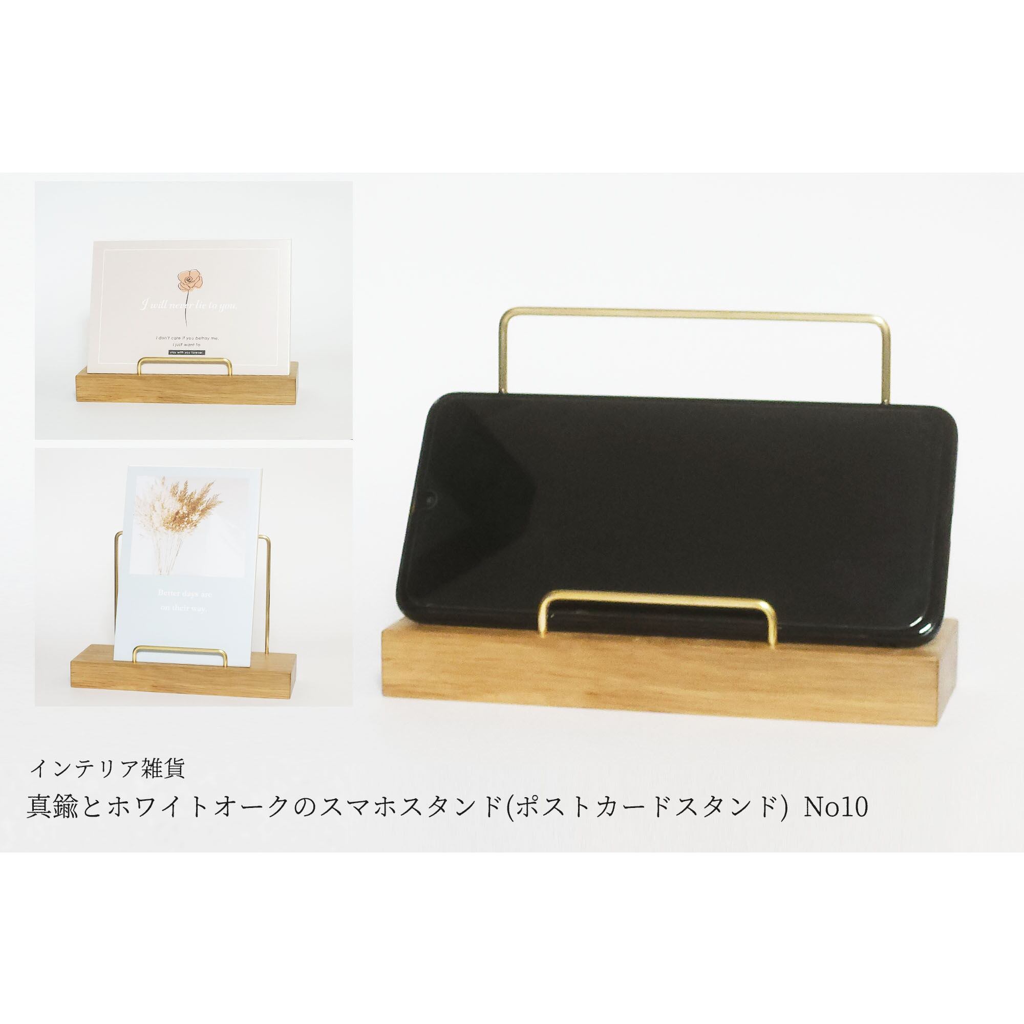 真鍮とホワイトオークのスマホスタンド(ポストカードスタンド) No10
