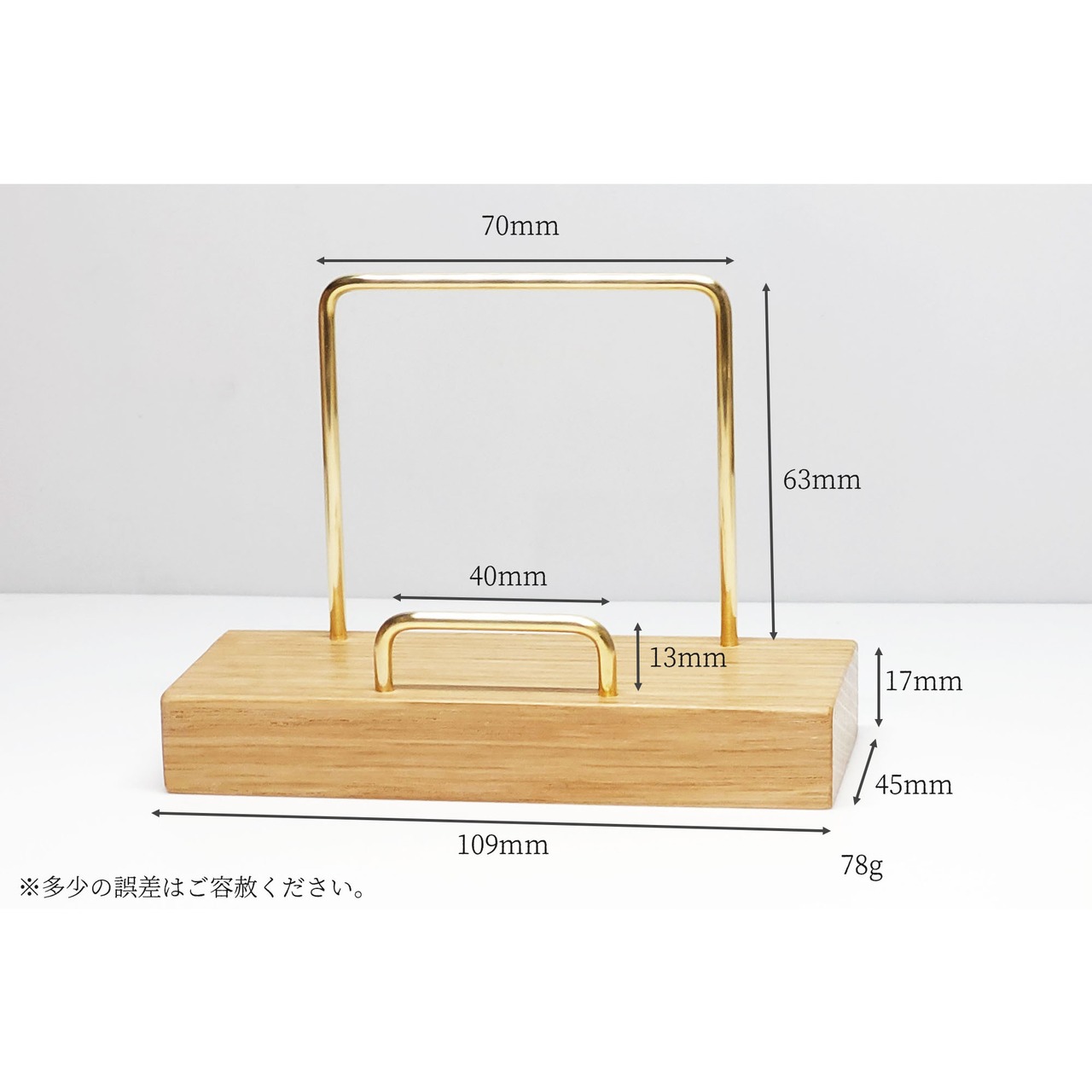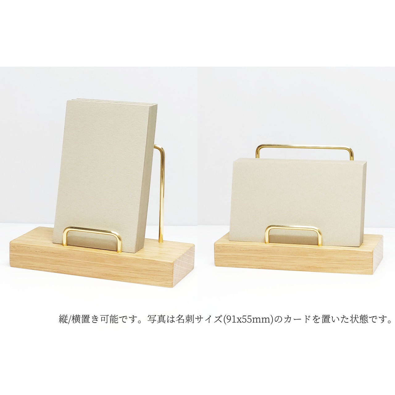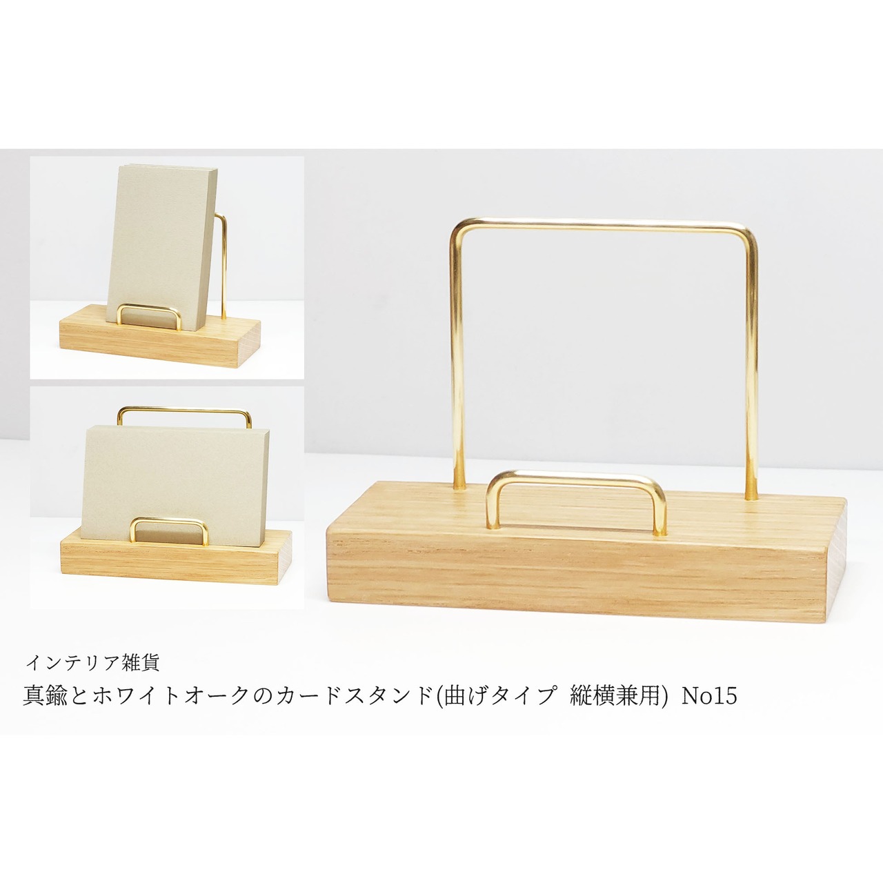 真鍮とホワイトオークのカードスタンド(曲げタイプ 縦横兼用) No15