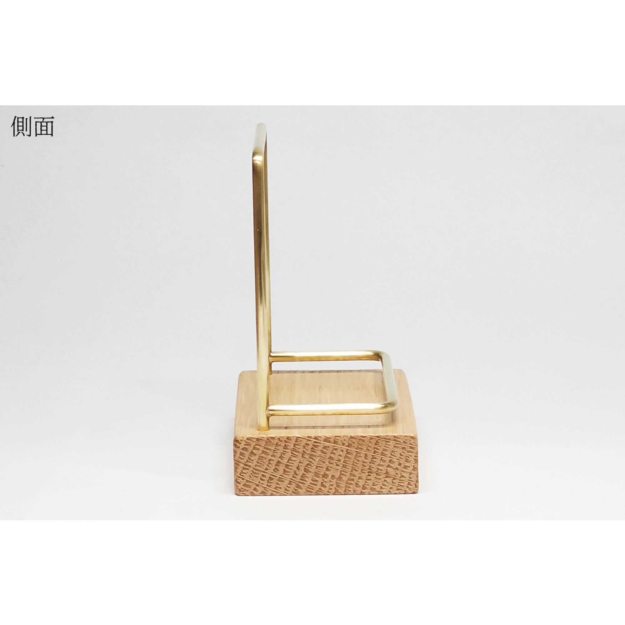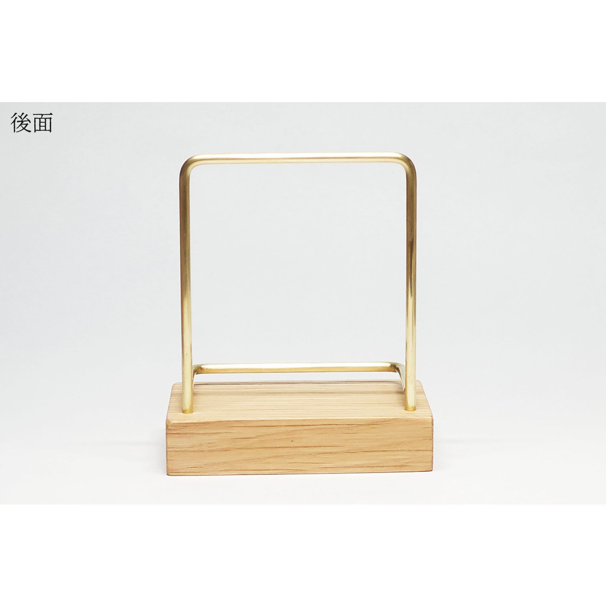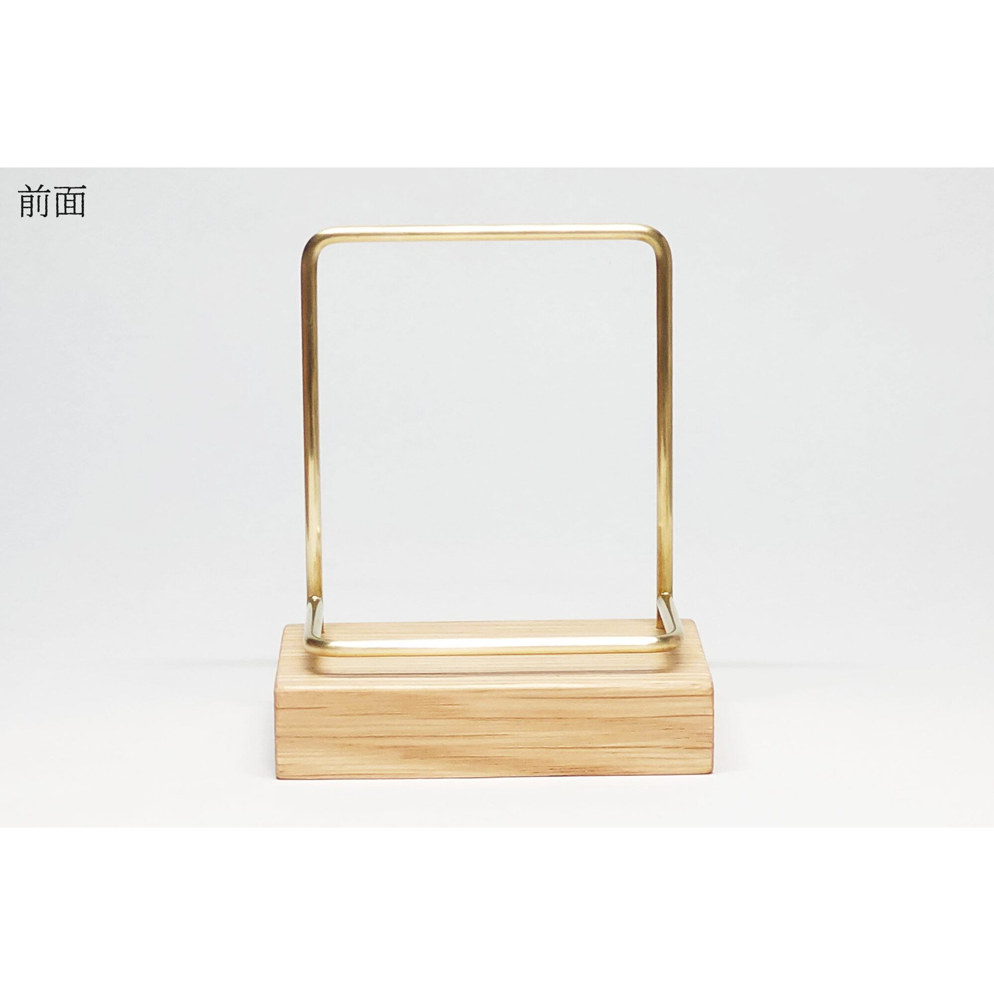 真鍮とホワイトオークのカードスタンド(Fタイプ 彫金 縦置き) No38