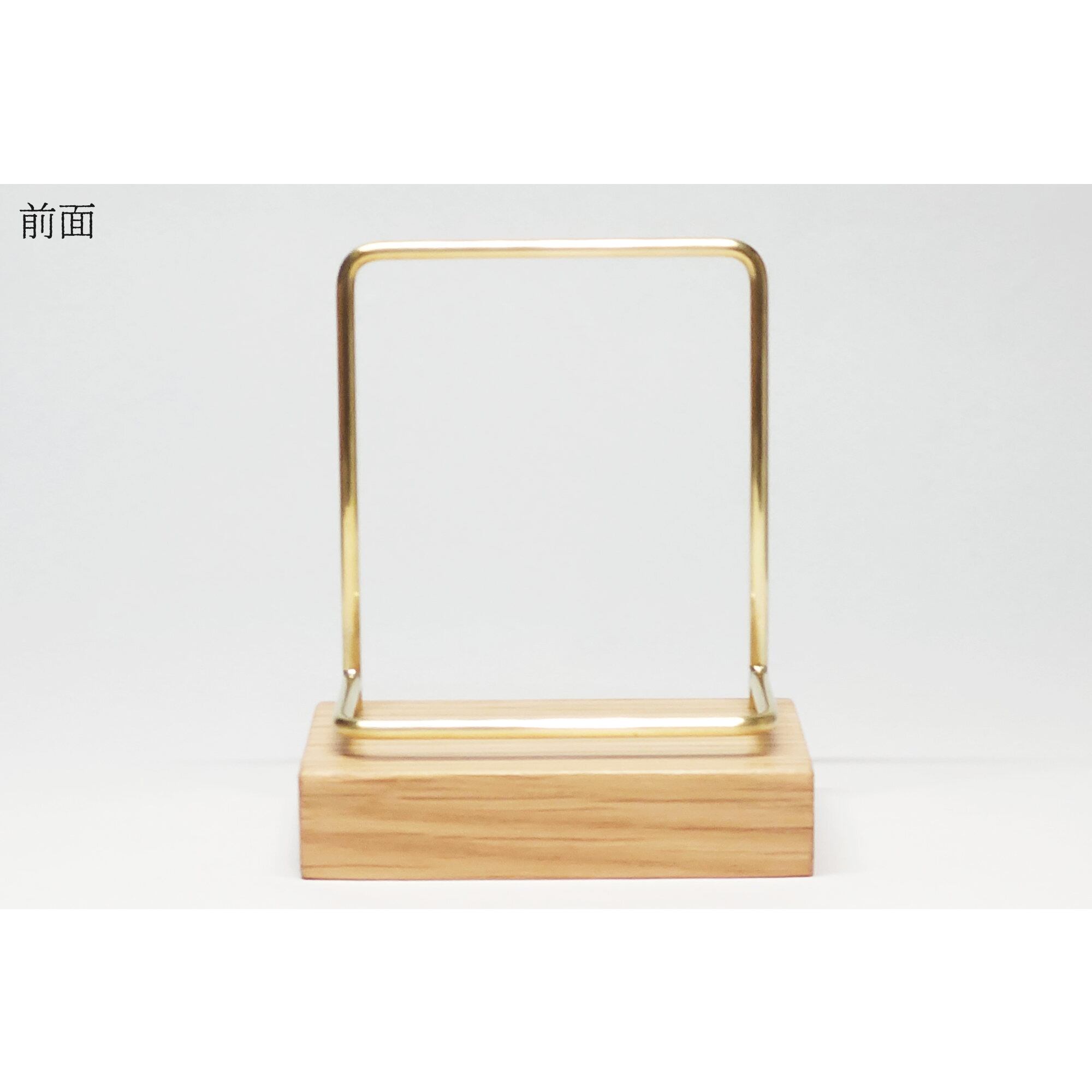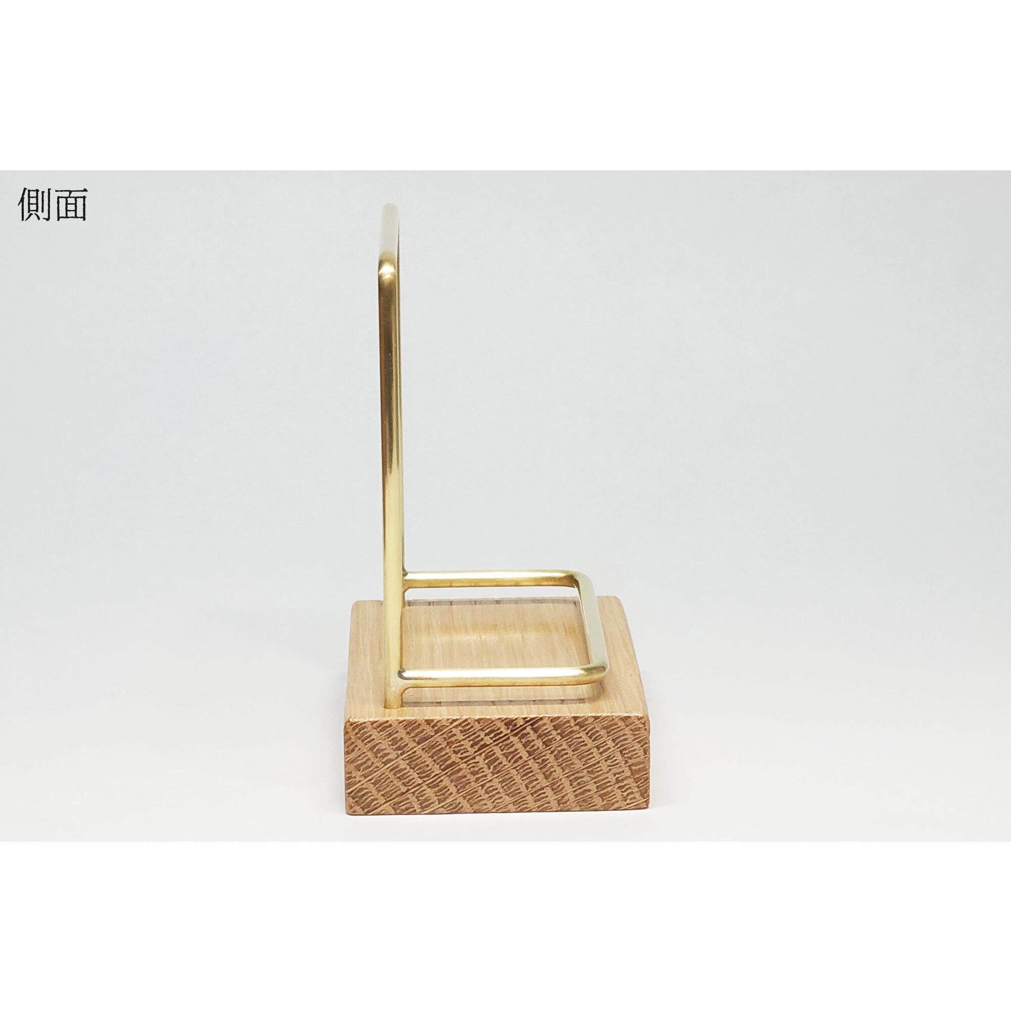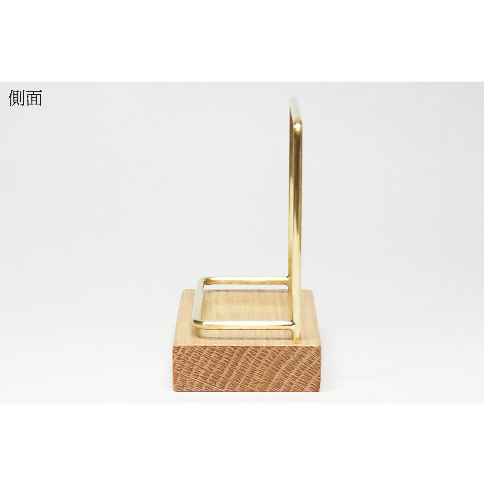 真鍮とホワイトオークのカードスタンド(Fタイプ 彫金 縦置き) No39
