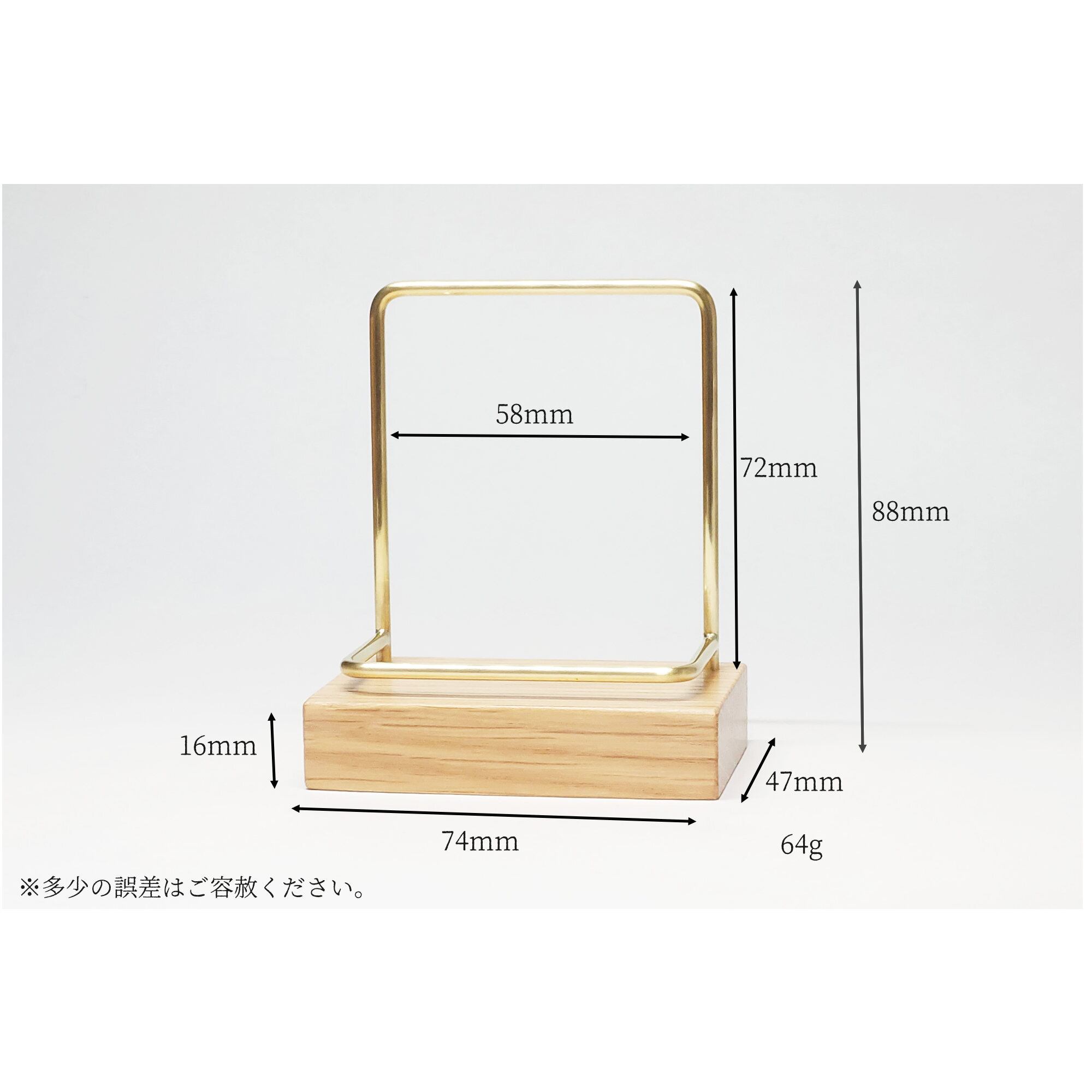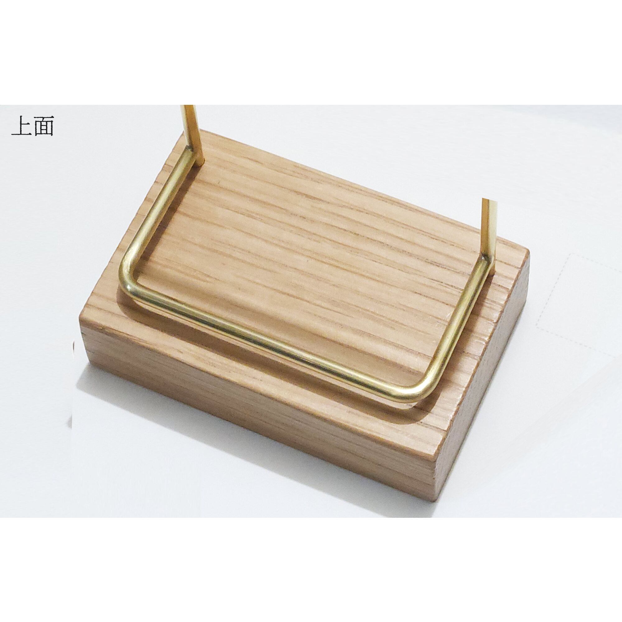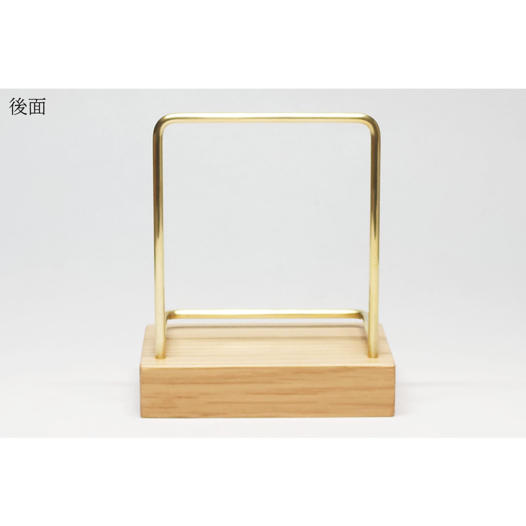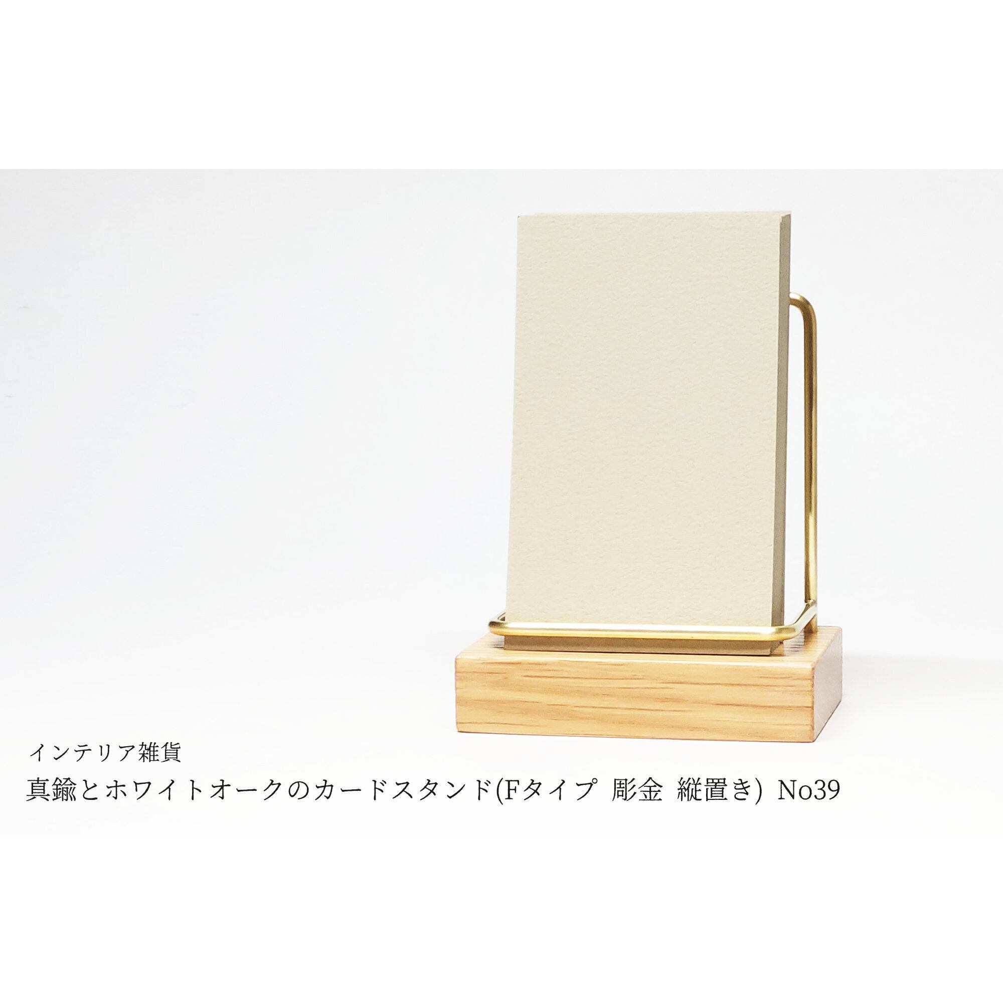 真鍮とホワイトオークのカードスタンド(Fタイプ 彫金 縦置き) No39