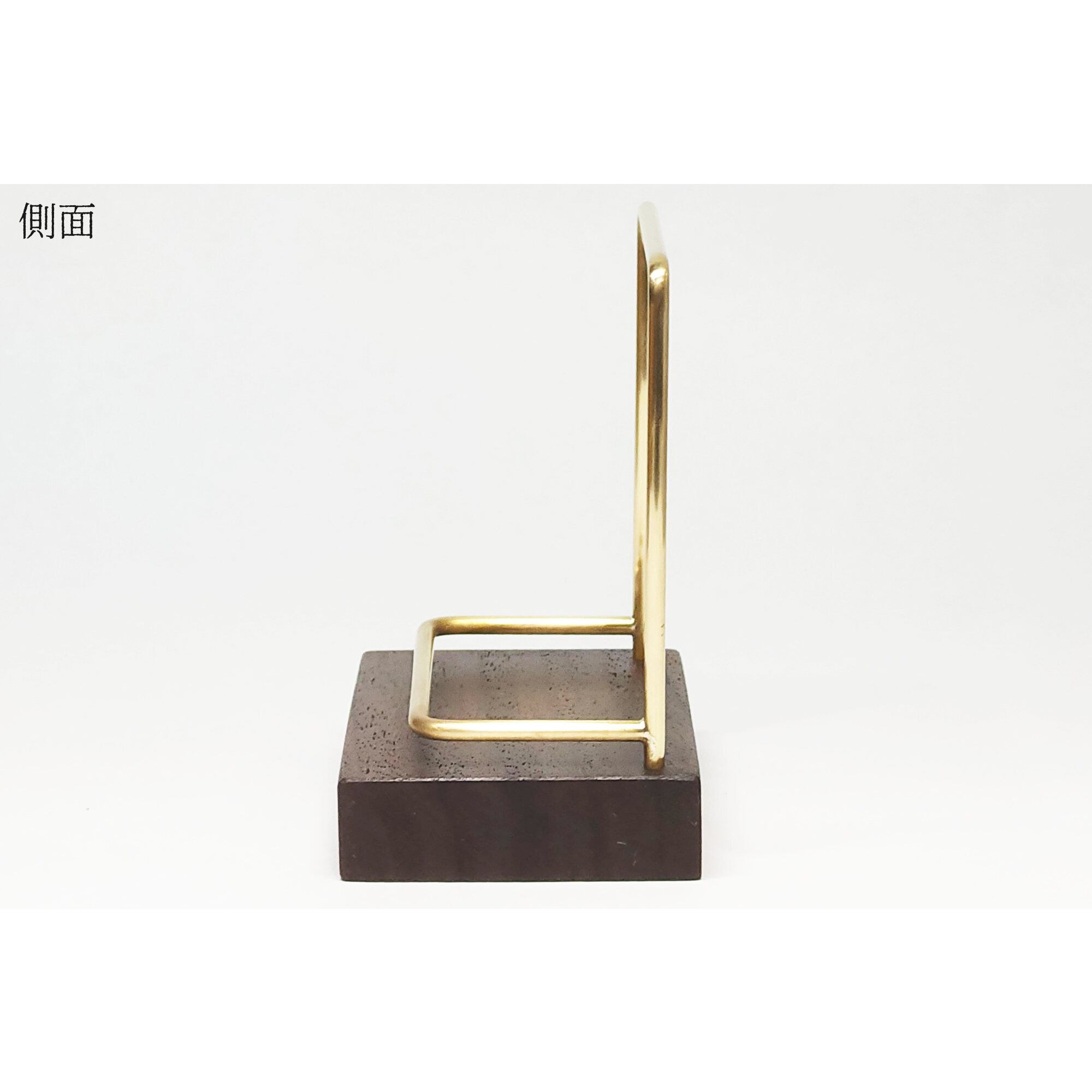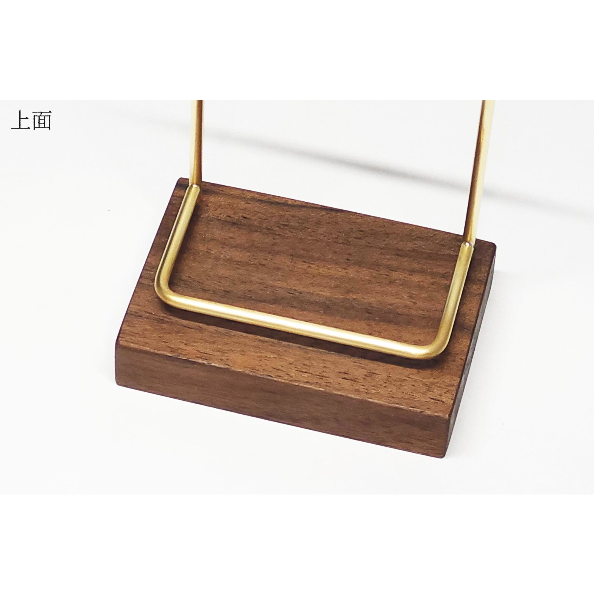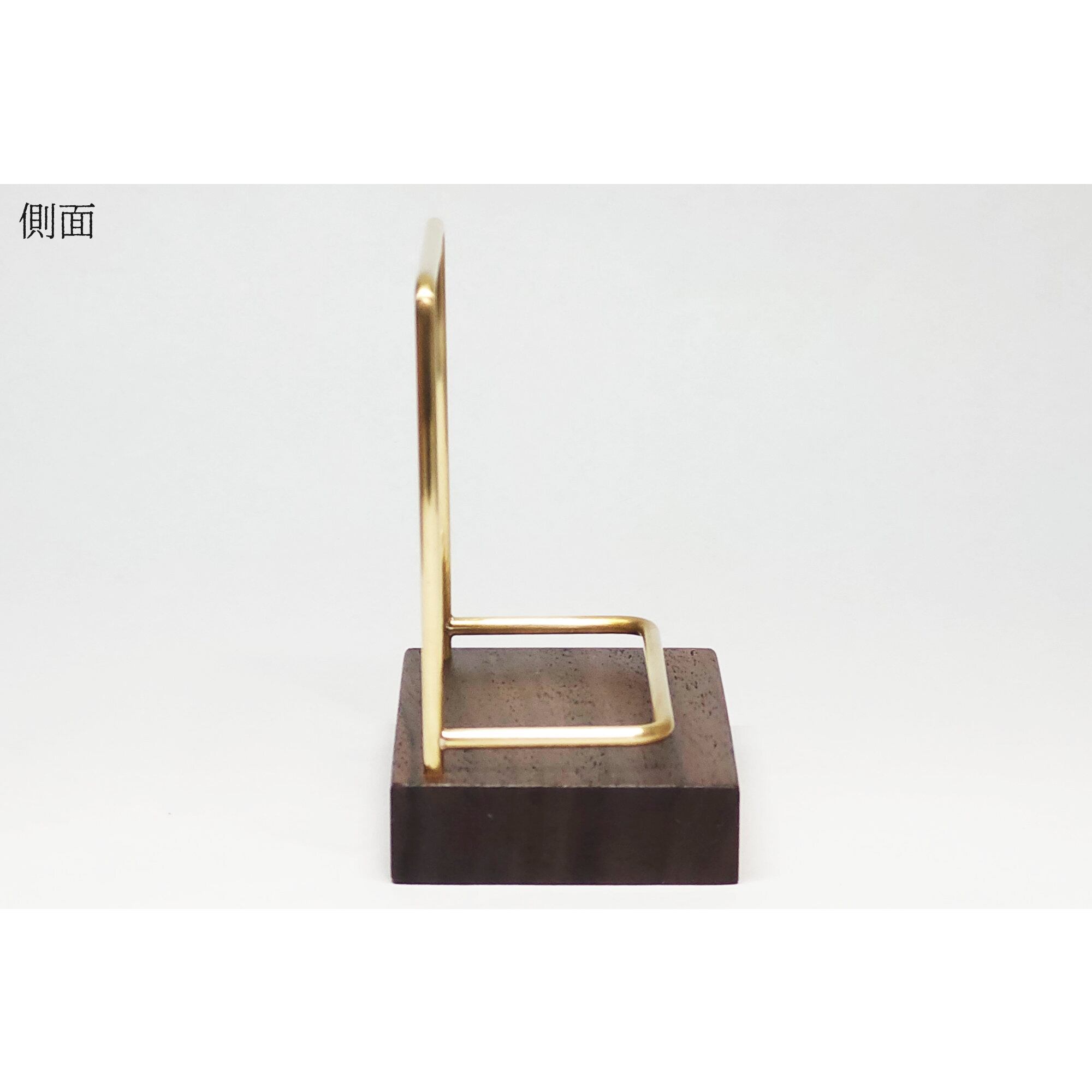 真鍮とウォールナットのカードスタンド(Fタイプ 彫金 縦置き) No59