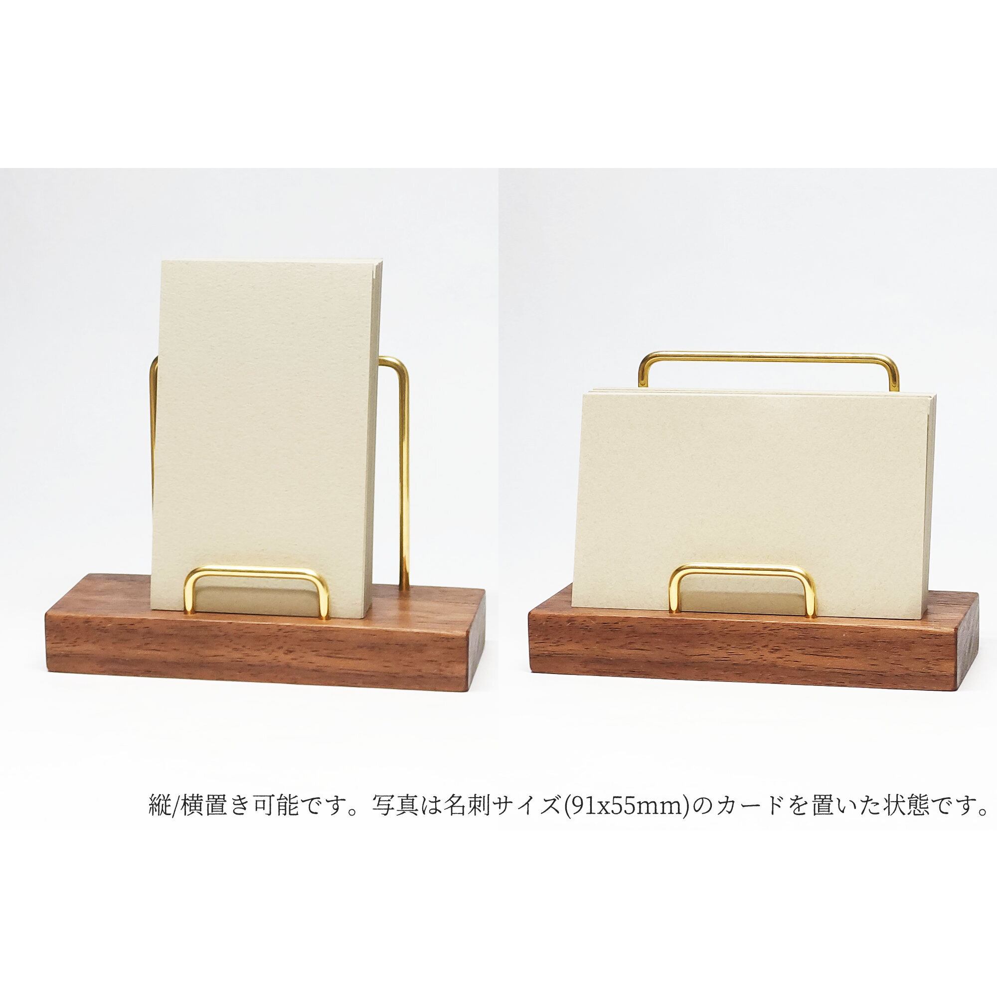 名刺サイズ(91x55mm)のカードが置けるカードスタンドです。