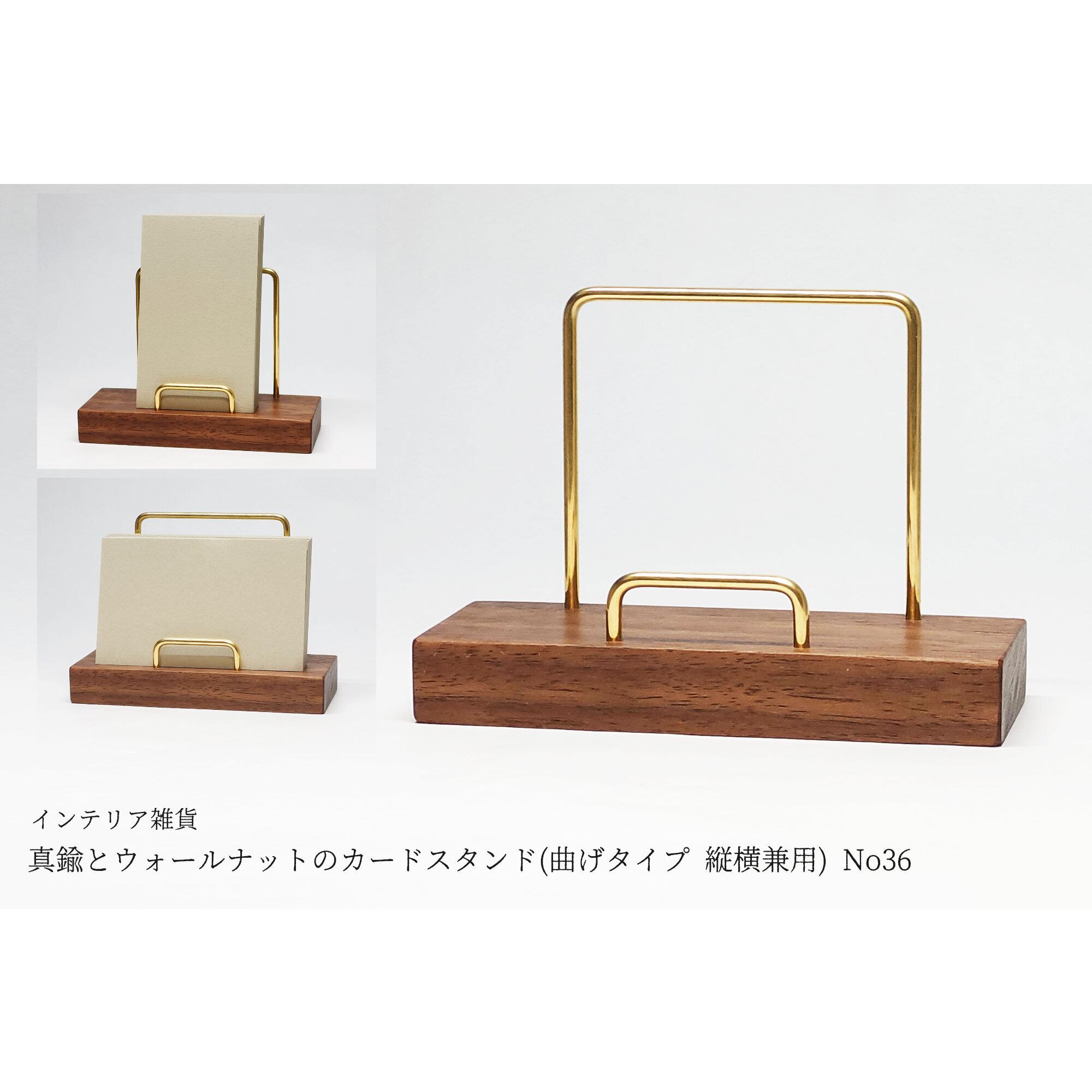 真鍮とウォールナットのカードスタンド(曲げタイプ 縦横兼用) No36