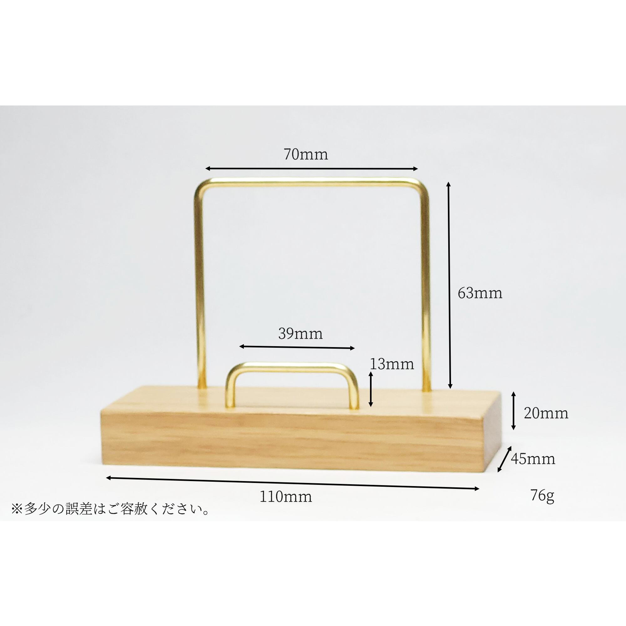 真鍮とホワイトオークのカードスタンド(曲げタイプ 縦横兼用) No17