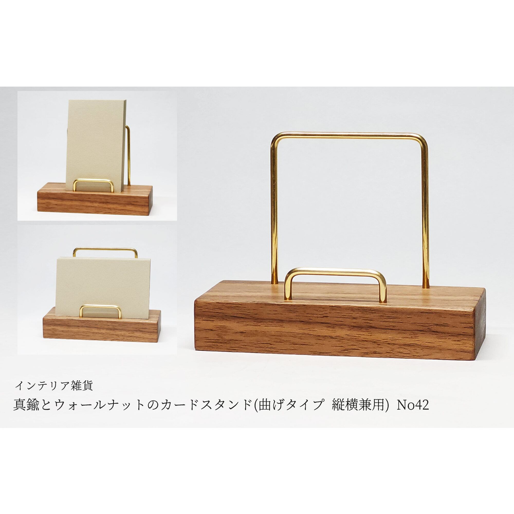 真鍮とウォールナットのカードスタンド(曲げタイプ 縦横兼用) No42