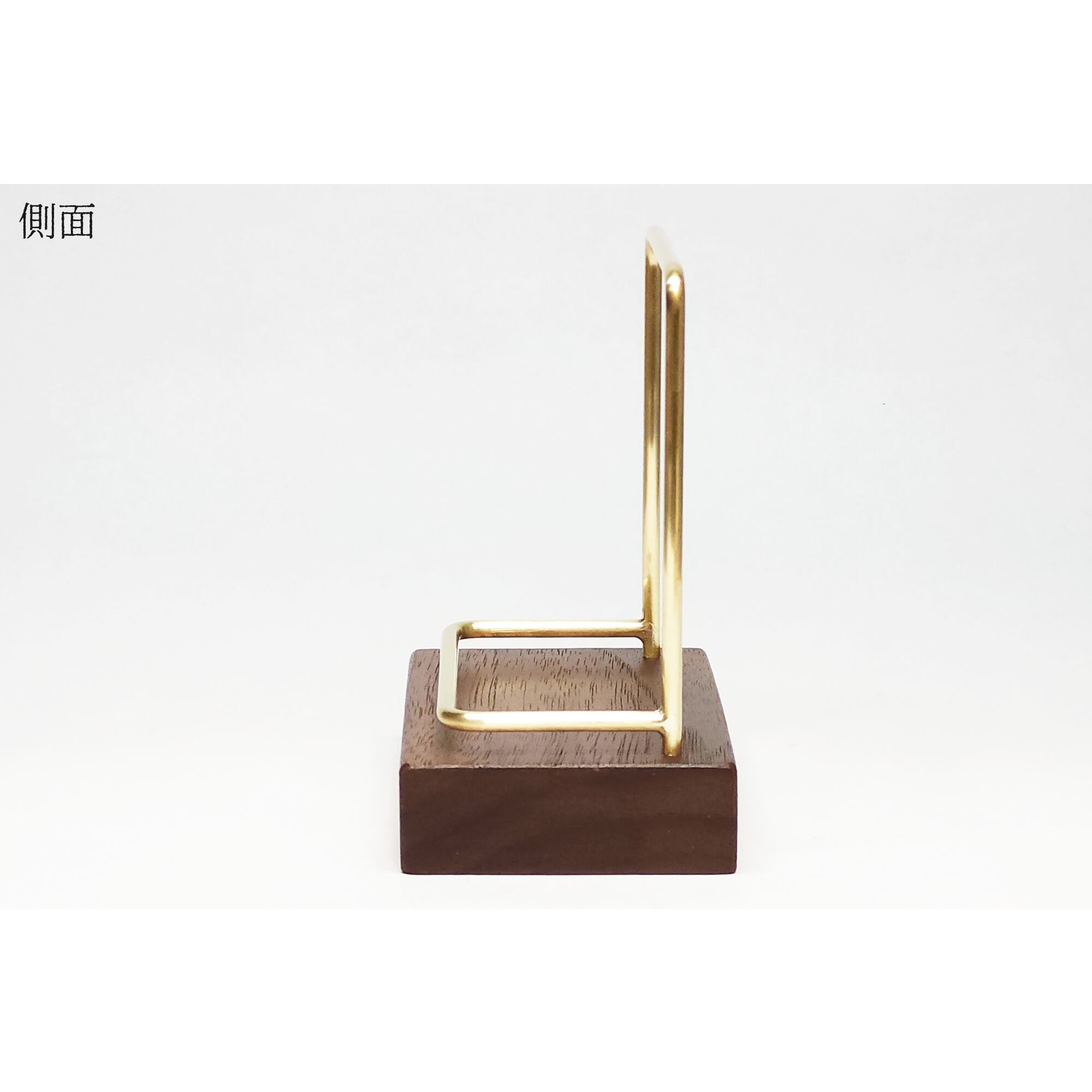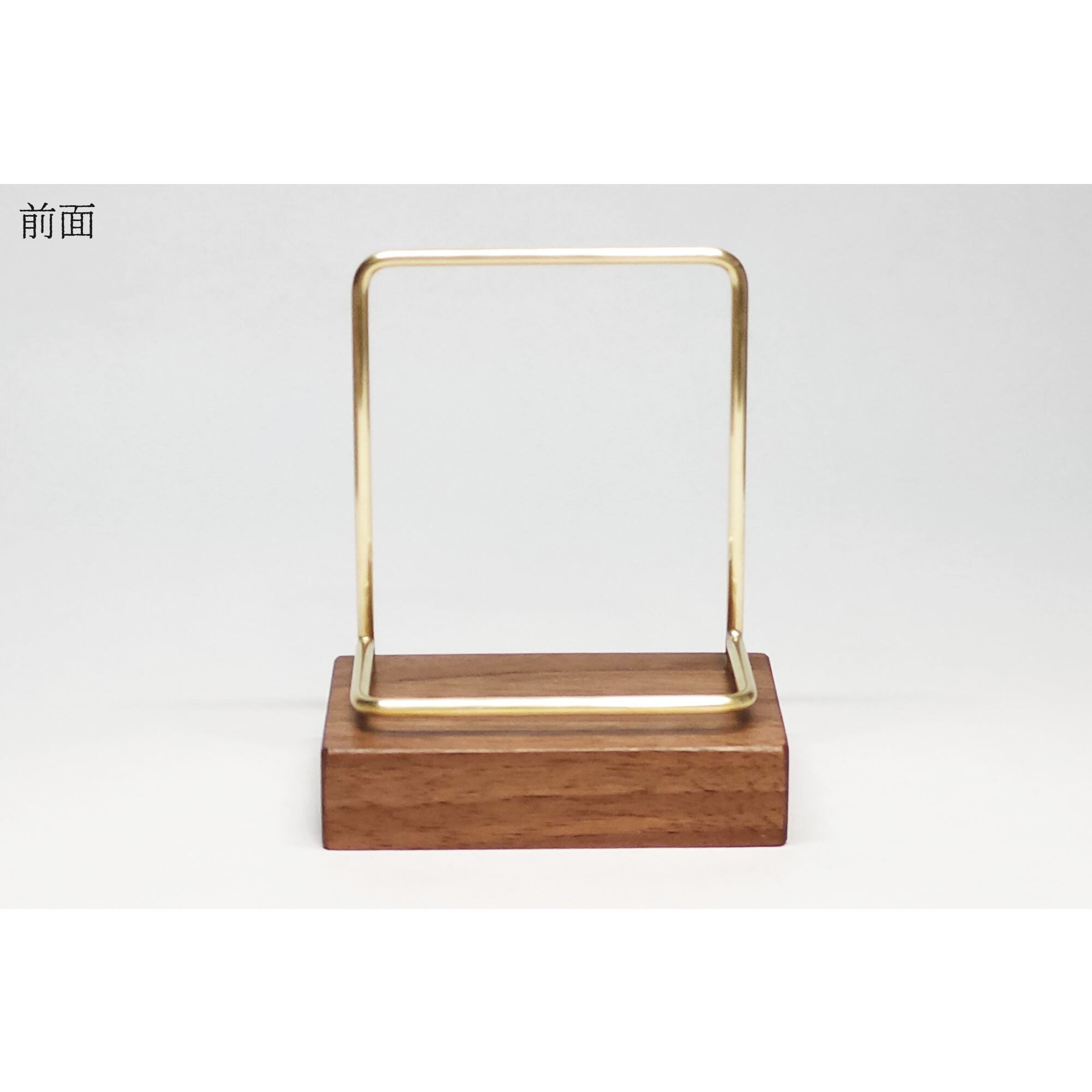 真鍮とウォールナットのカードスタンド(Fタイプ 彫金 縦置き) No66