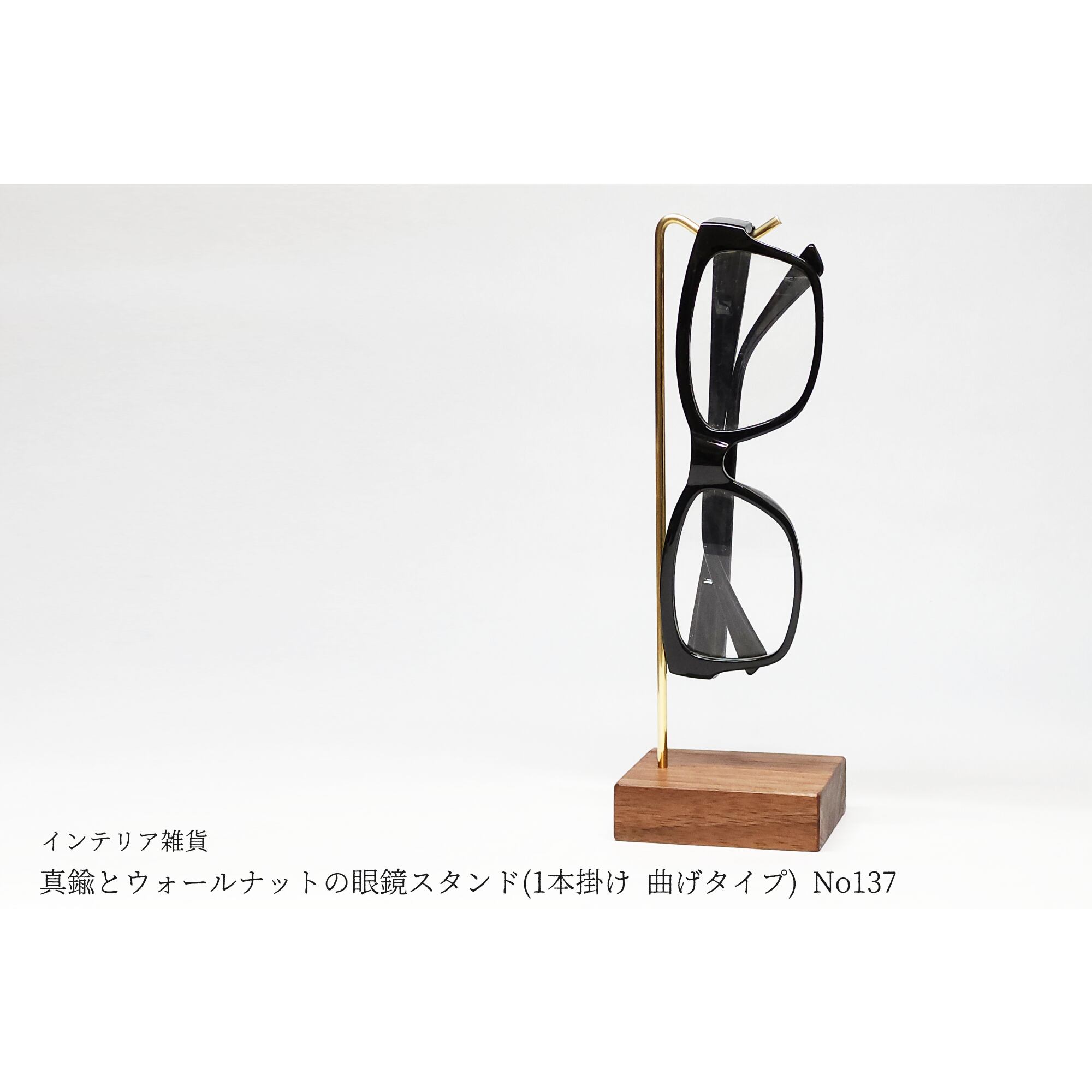 真鍮とウォールナットの眼鏡スタンド(1本掛け 曲げタイプ) No137