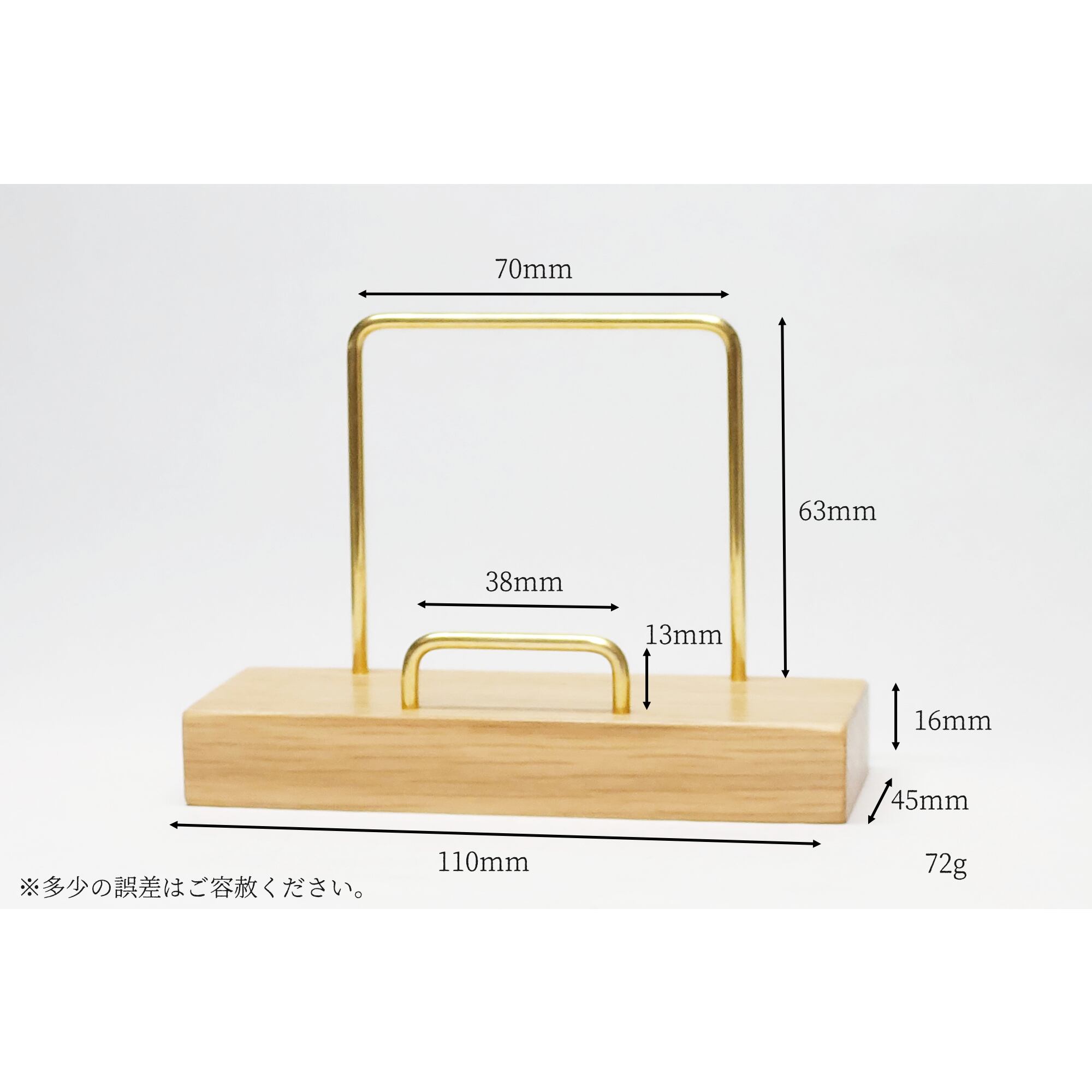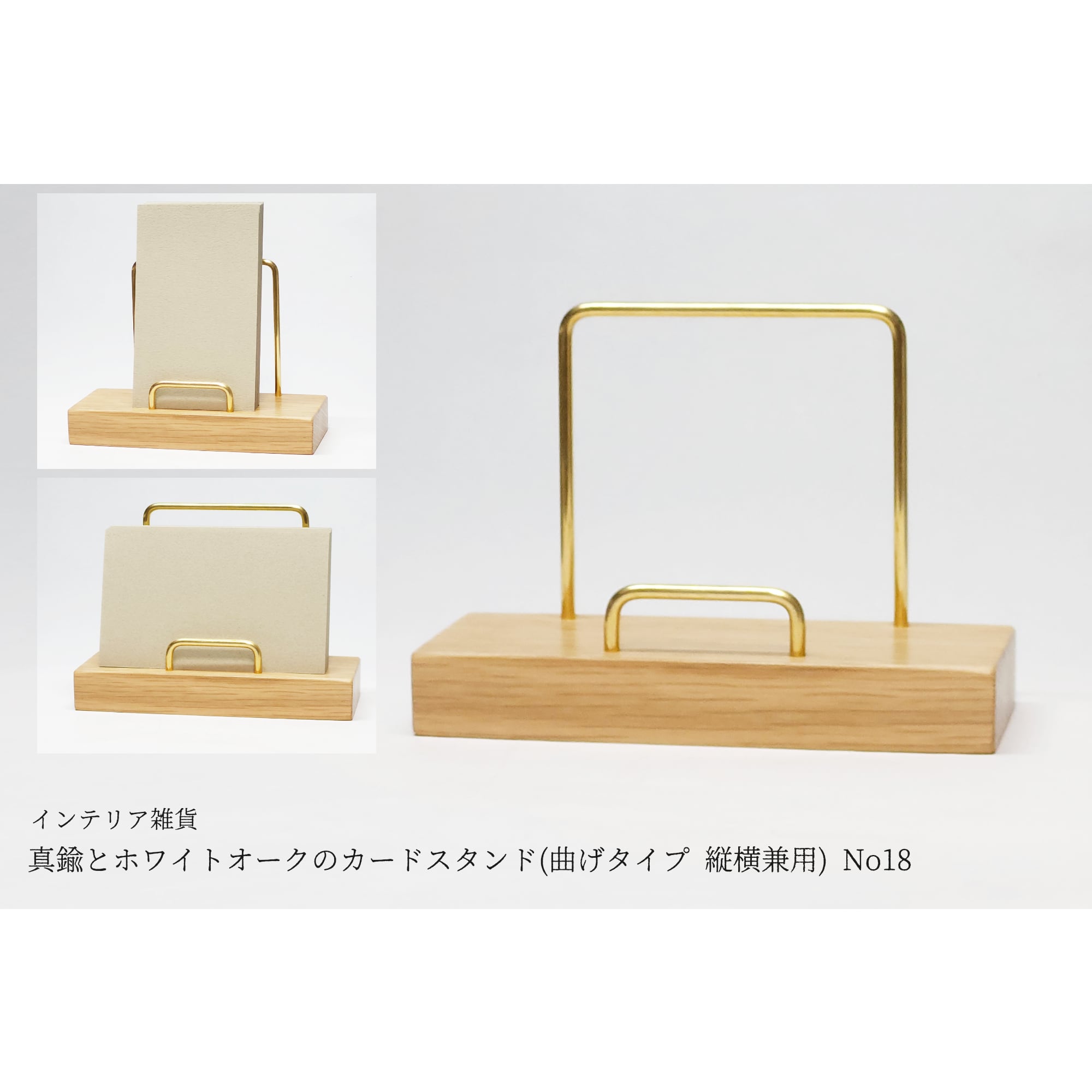 真鍮とホワイトオークのカードスタンド(曲げタイプ 縦横兼用) No18