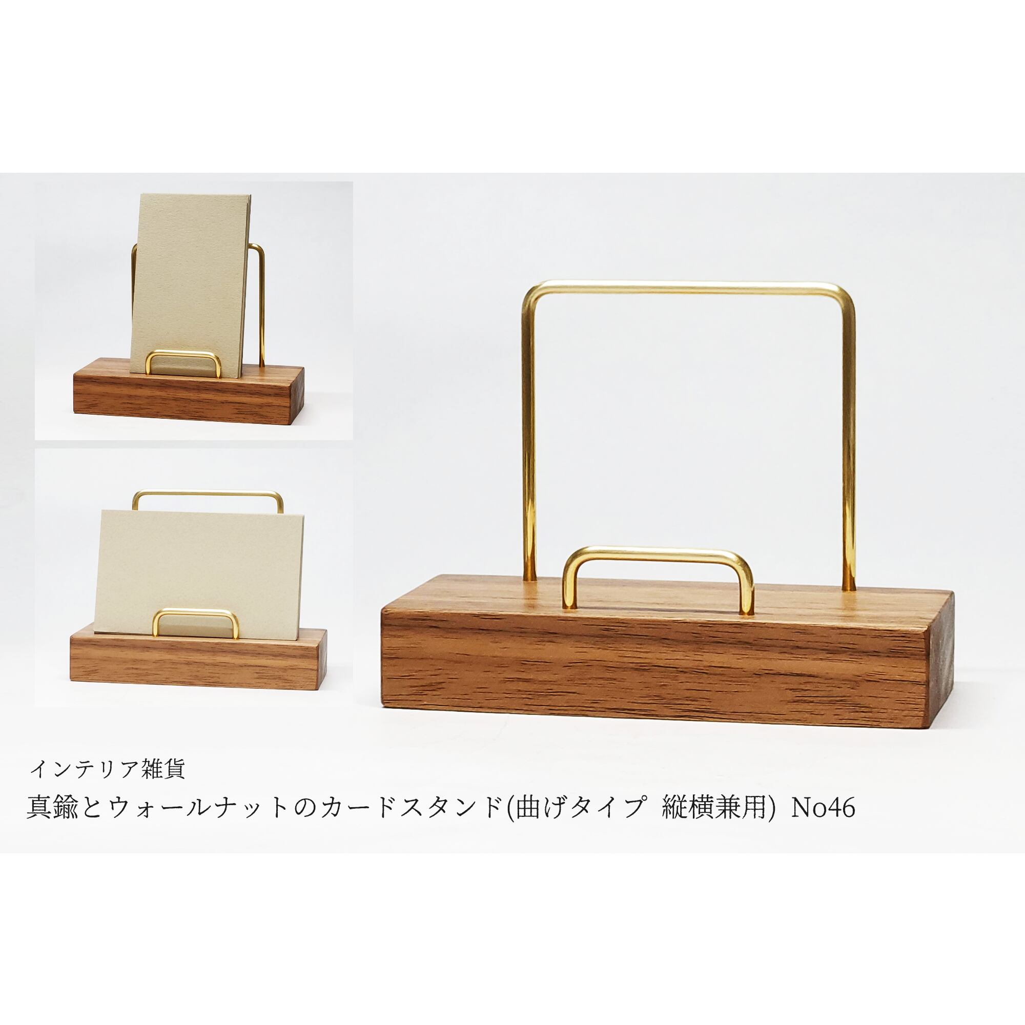 真鍮とウォールナットのカードスタンド(曲げタイプ 縦横兼用) No46