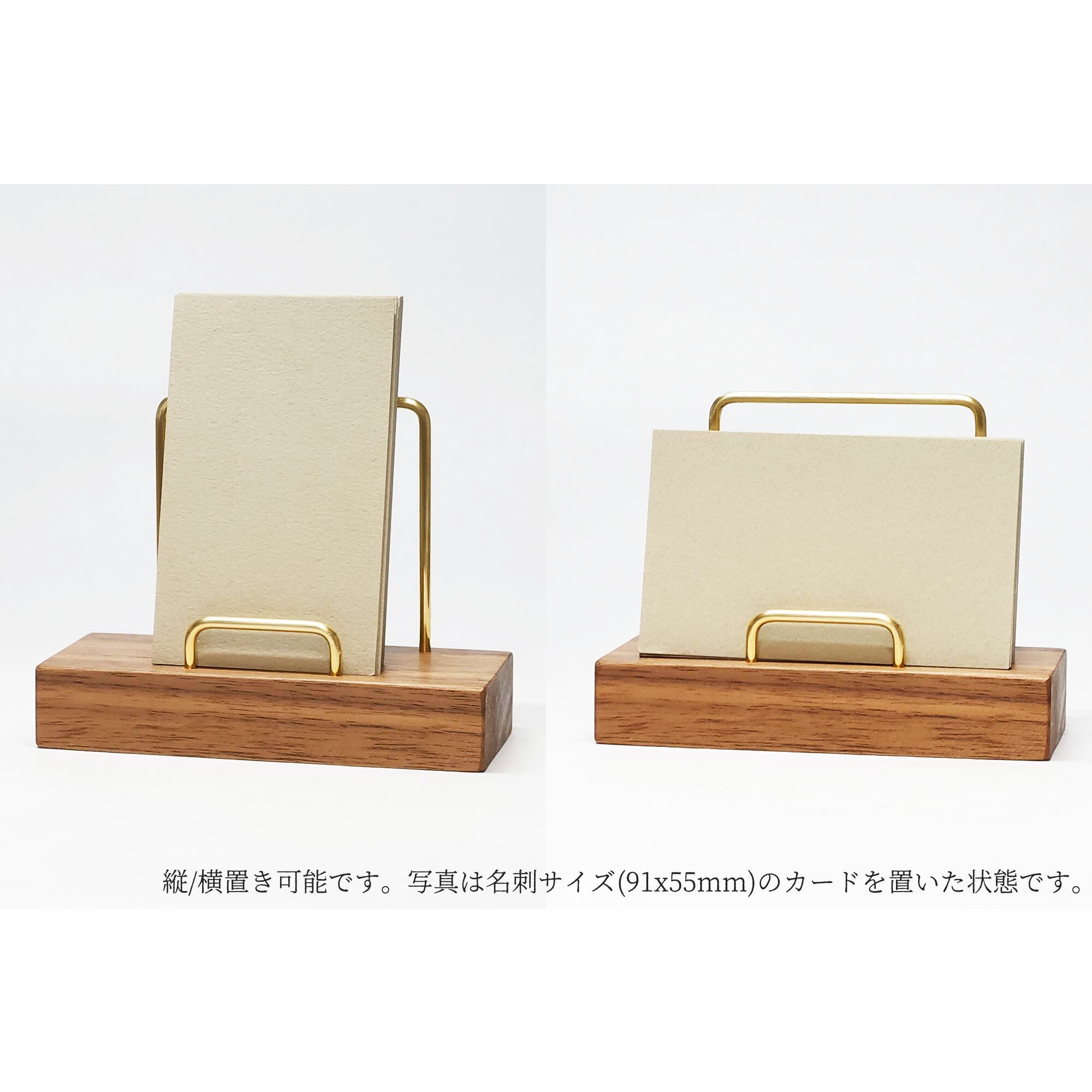 名刺サイズ(91x55mm)のカードが置けるカードスタンドです。