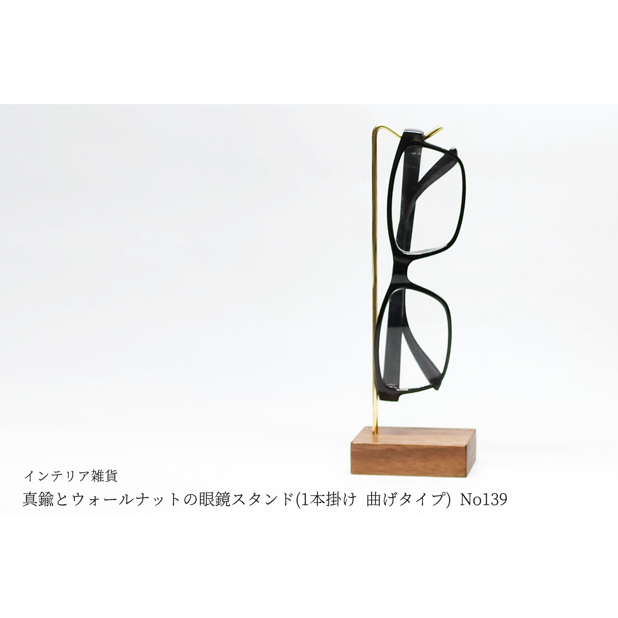 真鍮とウォールナットの眼鏡スタンド(1本掛け 曲げタイプ) No139
