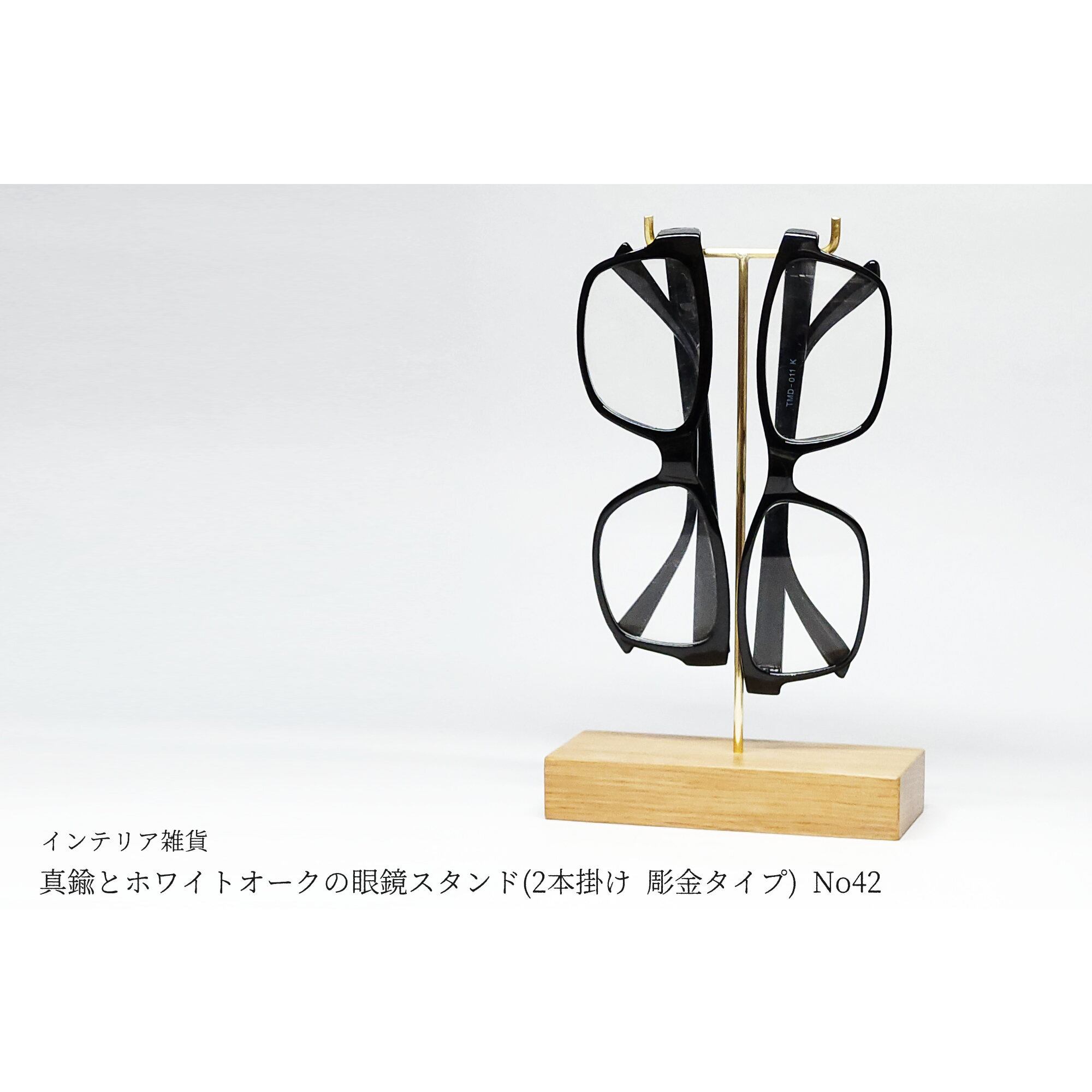 真鍮とホワイトオークの眼鏡スタンド(2本掛け 彫金タイプ) No42