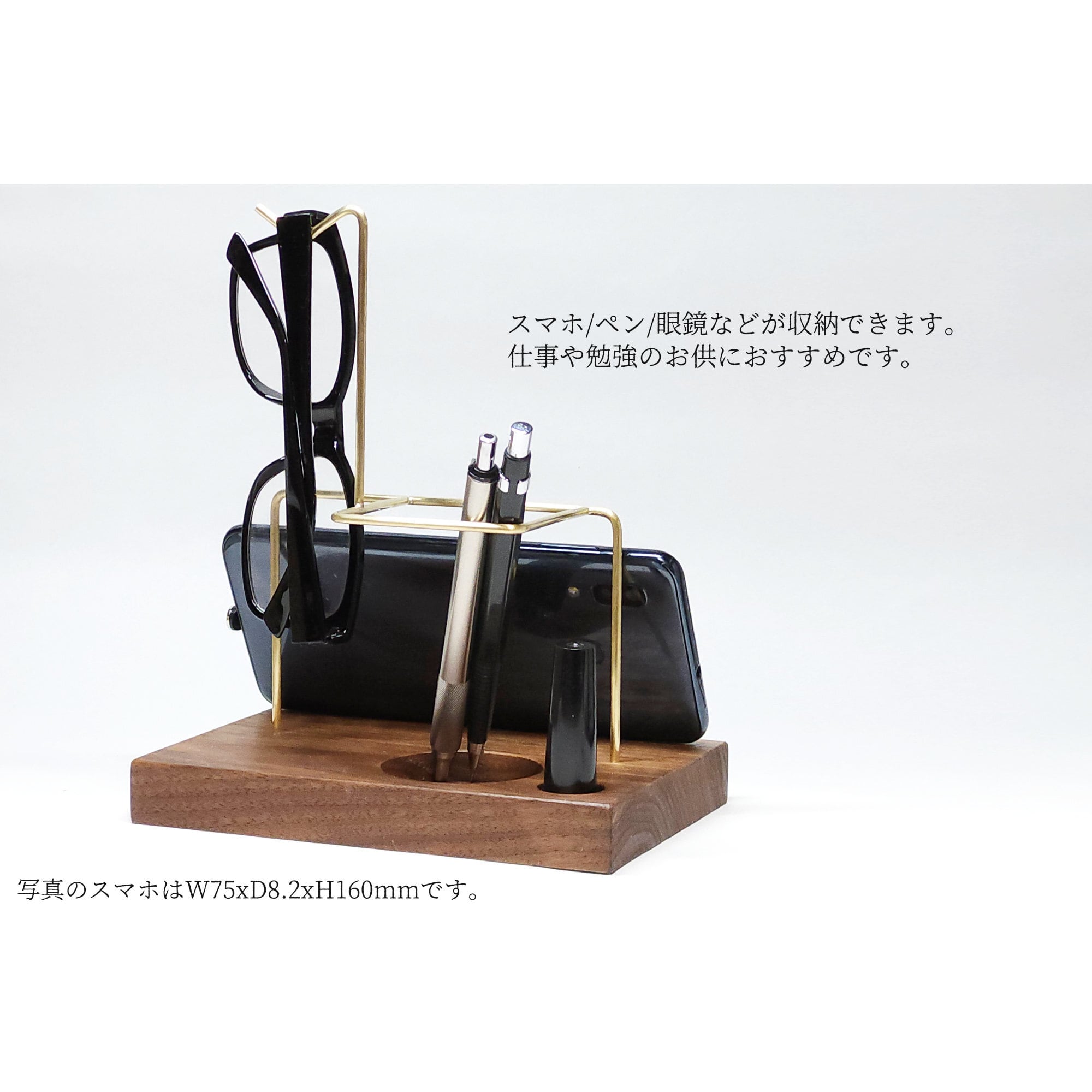 スマホスタンド、ペンスタンド、眼鏡スタンドが一つにまとまっていますので、