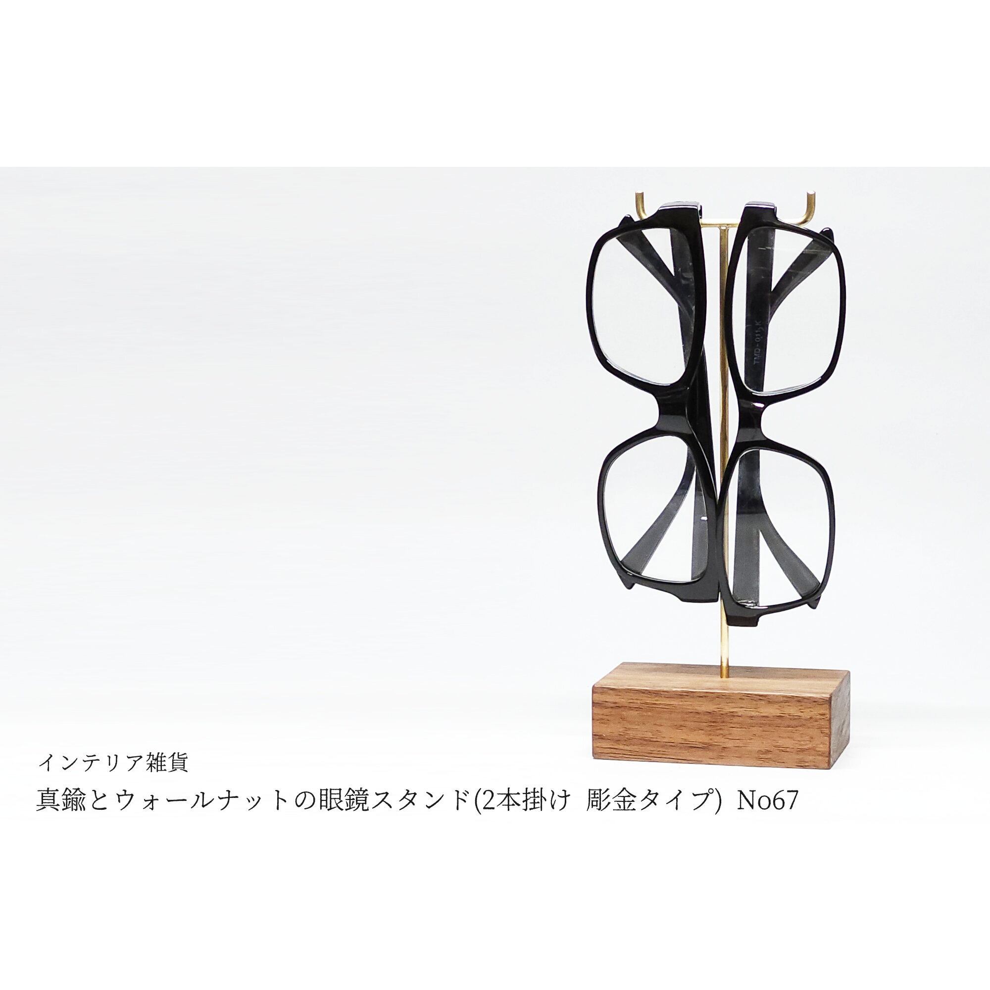真鍮とウォールナットの眼鏡スタンド(2本掛け 彫金タイプ) No67