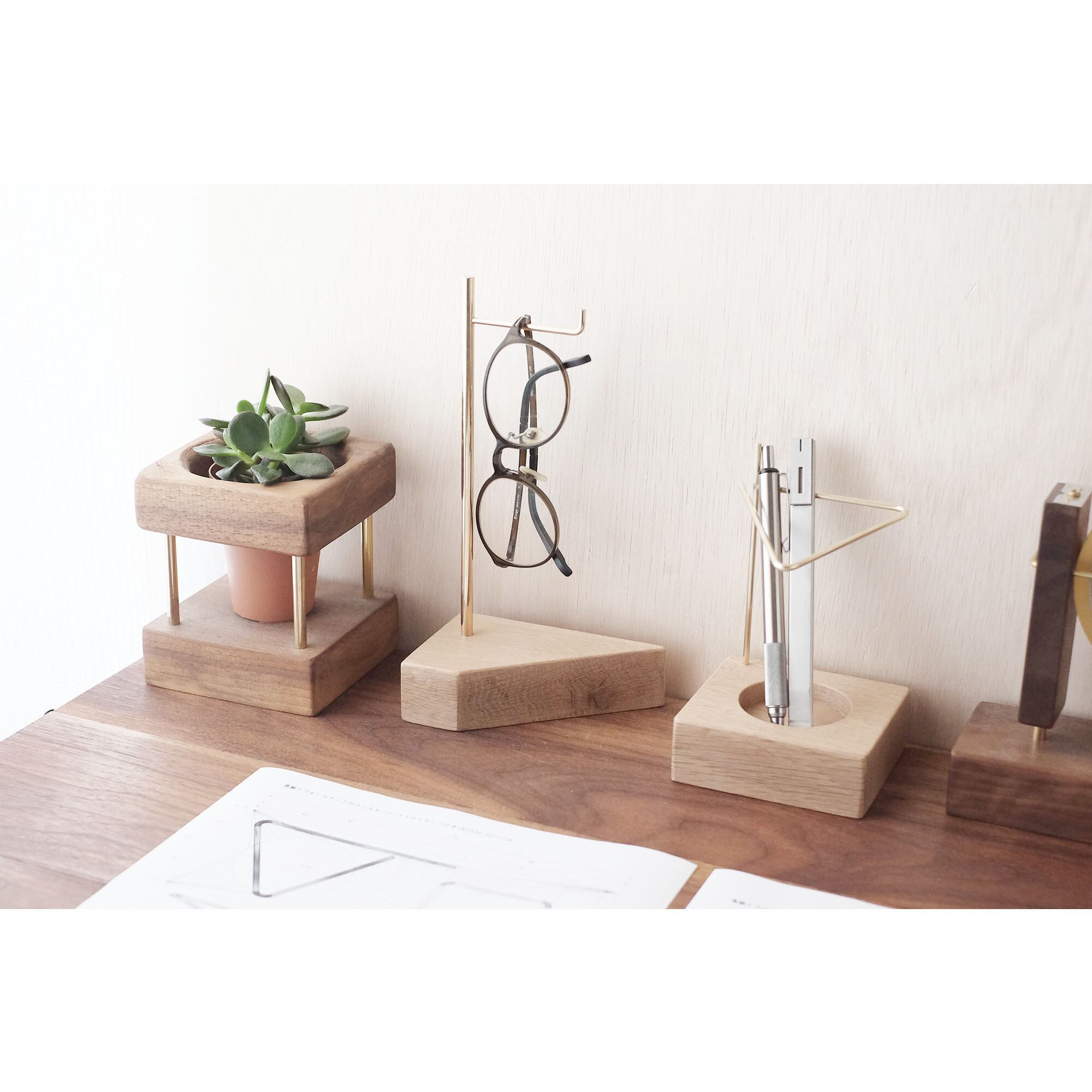 真鍮と無垢のホワイトオークでできたシンプルな眼鏡スタンドです。
