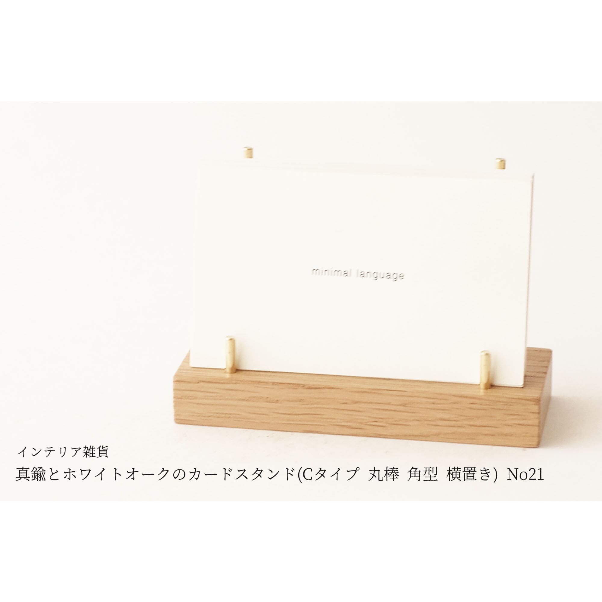 真鍮とホワイトオークのカードスタンド(Cタイプ 丸棒 角型 横置き) No21