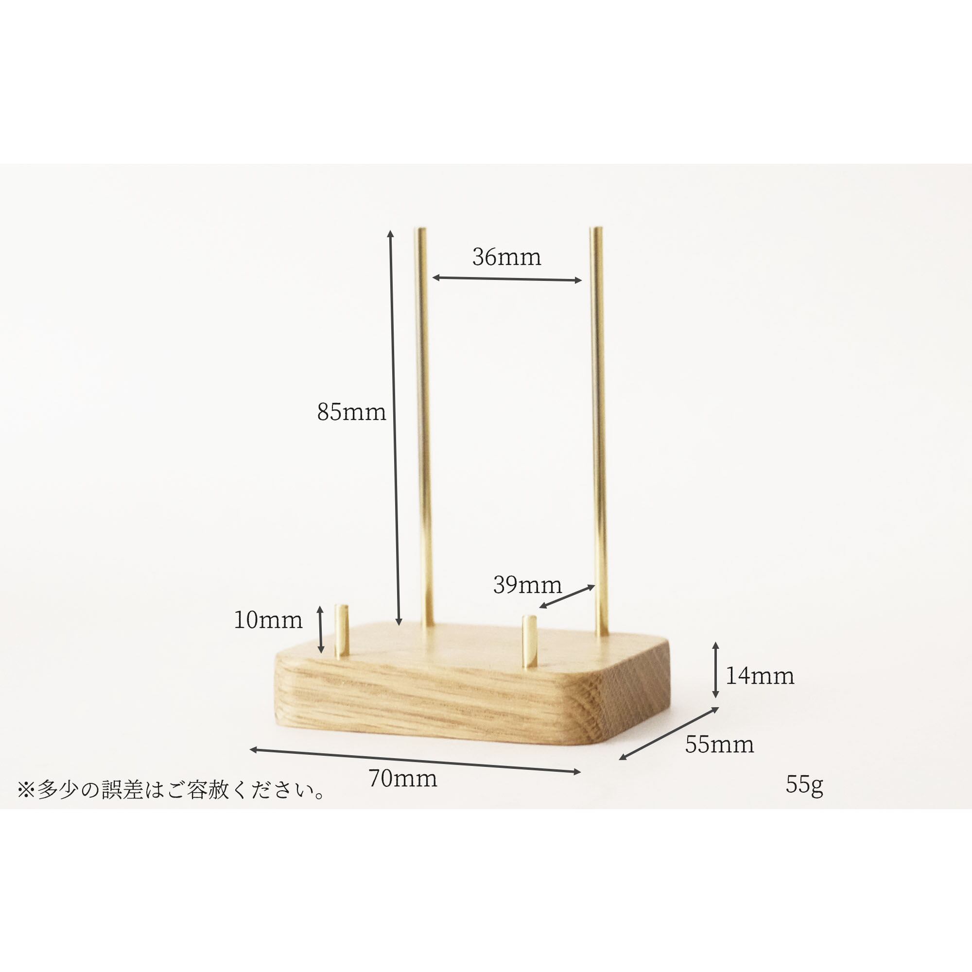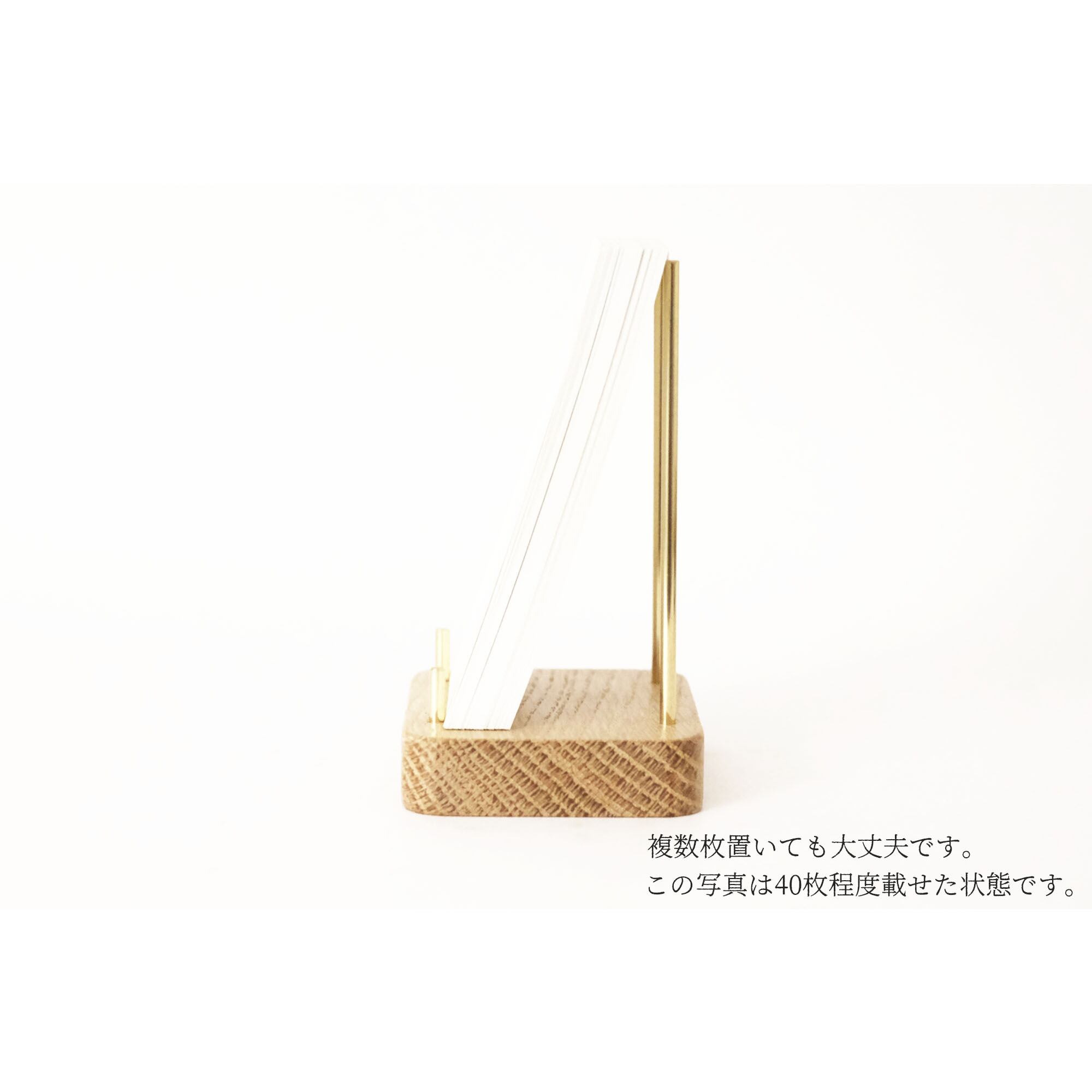 真鍮とホワイトオークのカードスタンド(Dタイプ 丸棒 丸型 縦置き) No14
