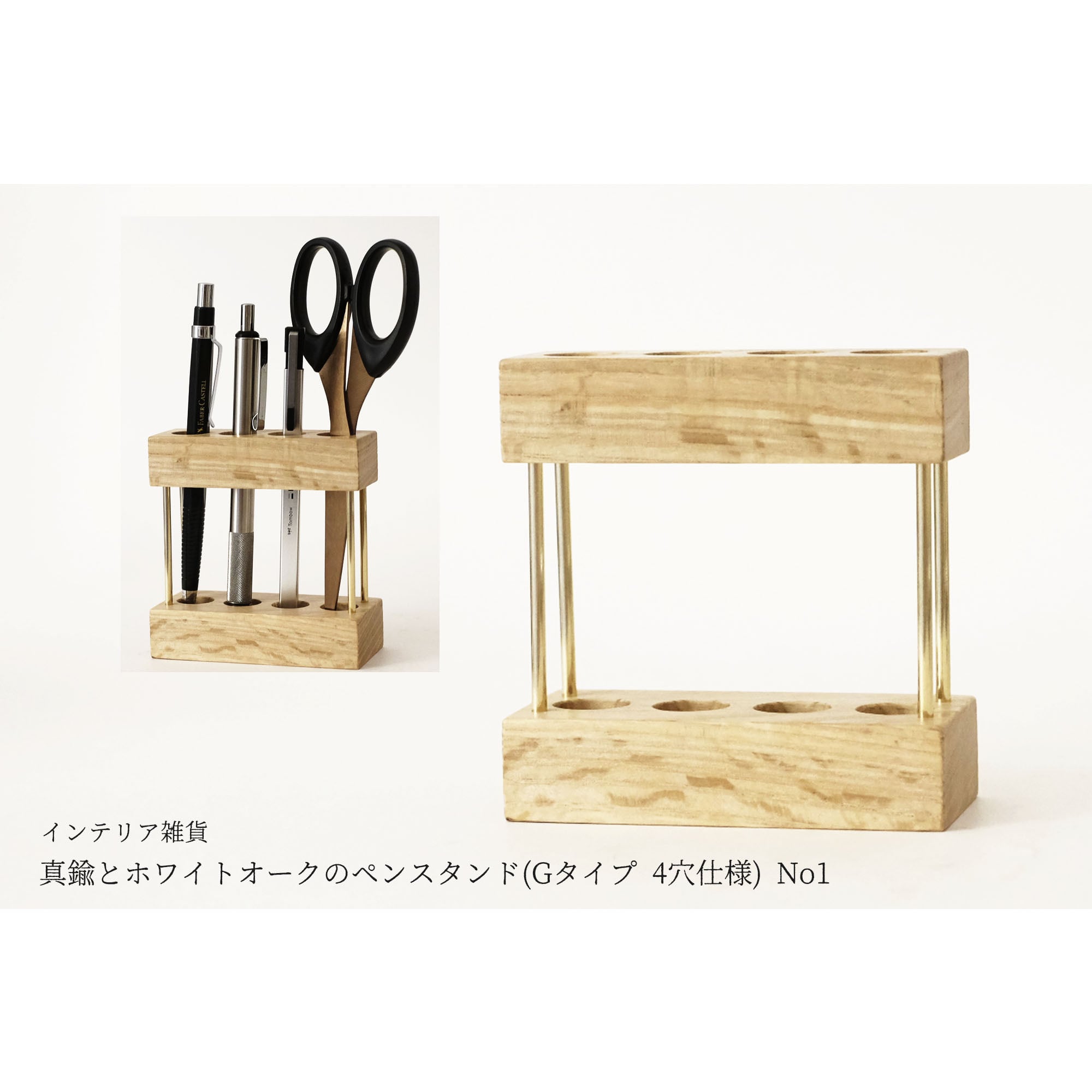 【アウトレット】真鍮とホワイトオークのペンスタンド(Gタイプ 4穴仕様) No1