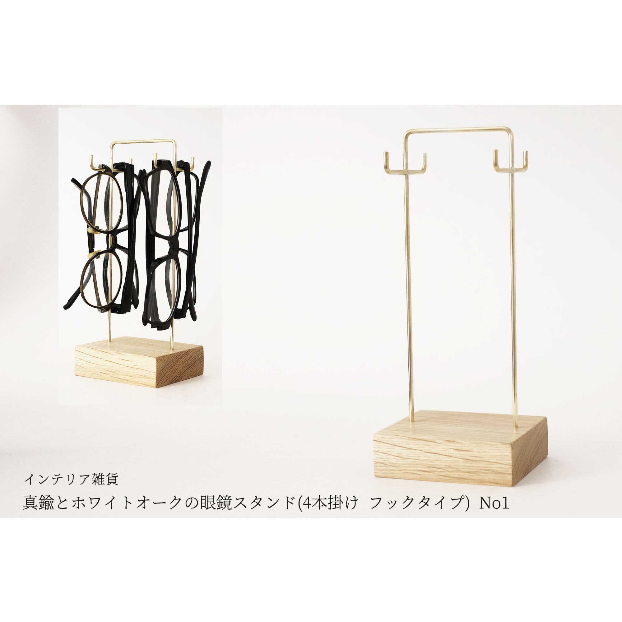 真鍮とホワイトオークの眼鏡スタンド(4本掛け フックタイプ) No1