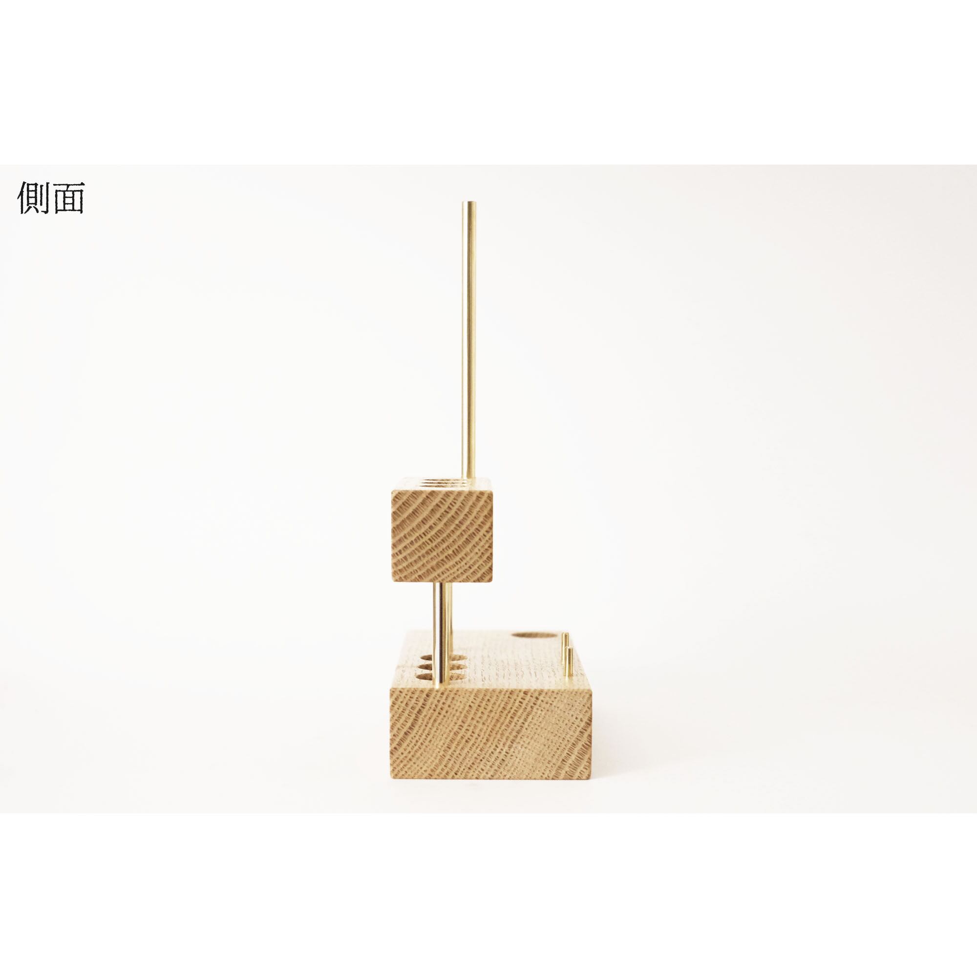 真鍮とホワイトオークのペンスタンド(眼鏡/カードスタンド付き) No18