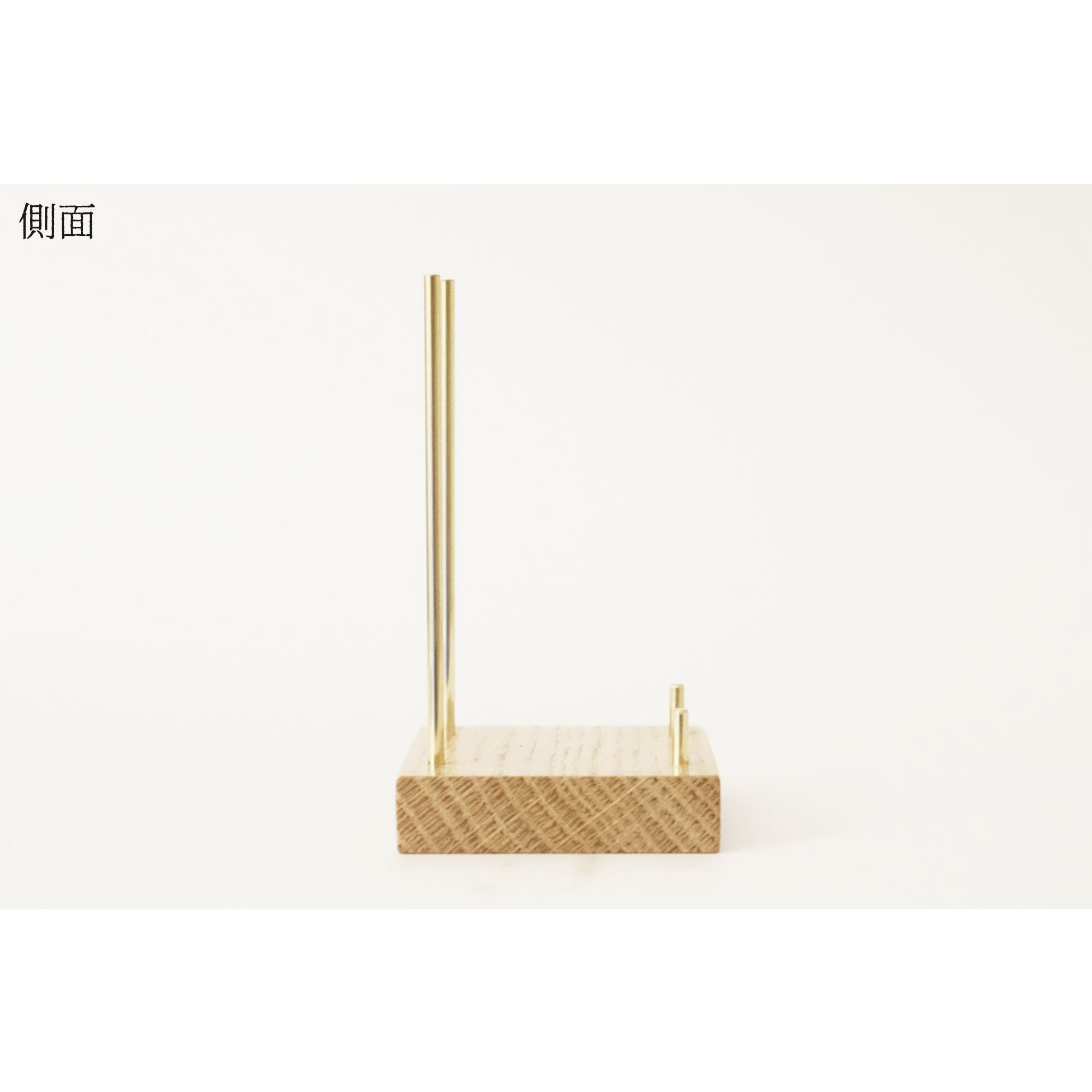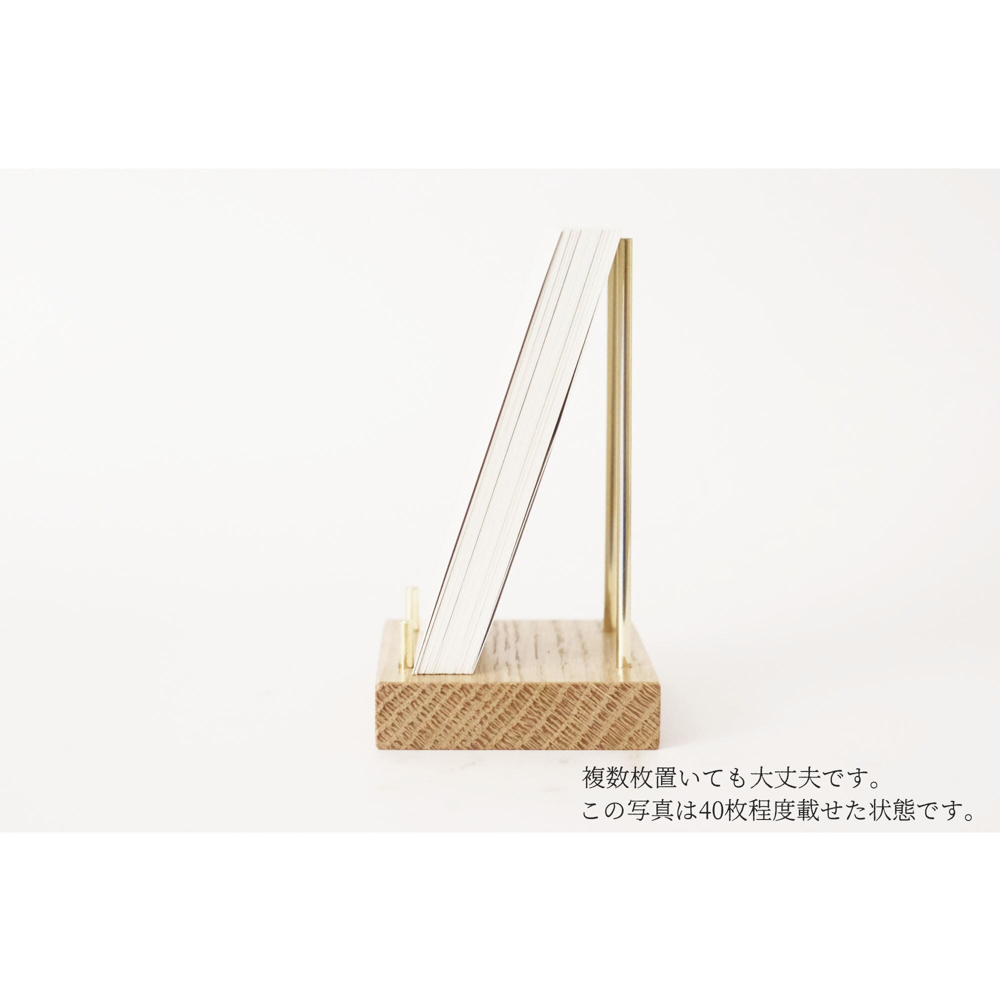 真鍮とホワイトオークのカードスタンド(Dタイプ 丸棒 角型 縦置き) No28