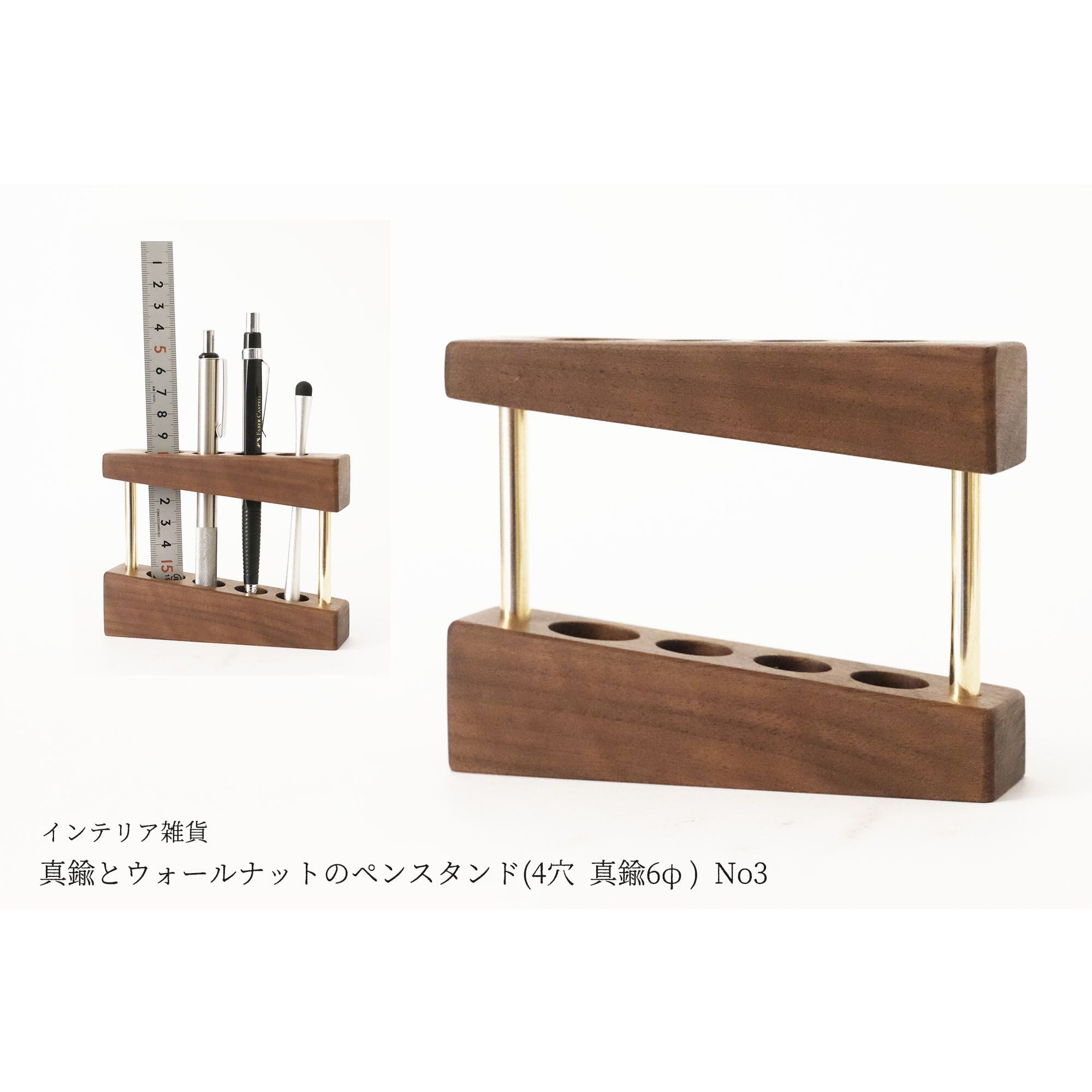 真鍮とウォールナットのペンスタンド(4穴 真鍮6φ) No3