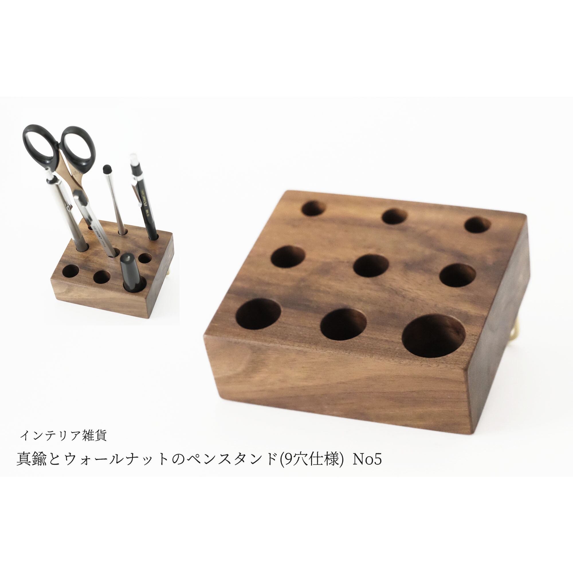 真鍮とウォールナットのペンスタンド(9穴仕様) No5