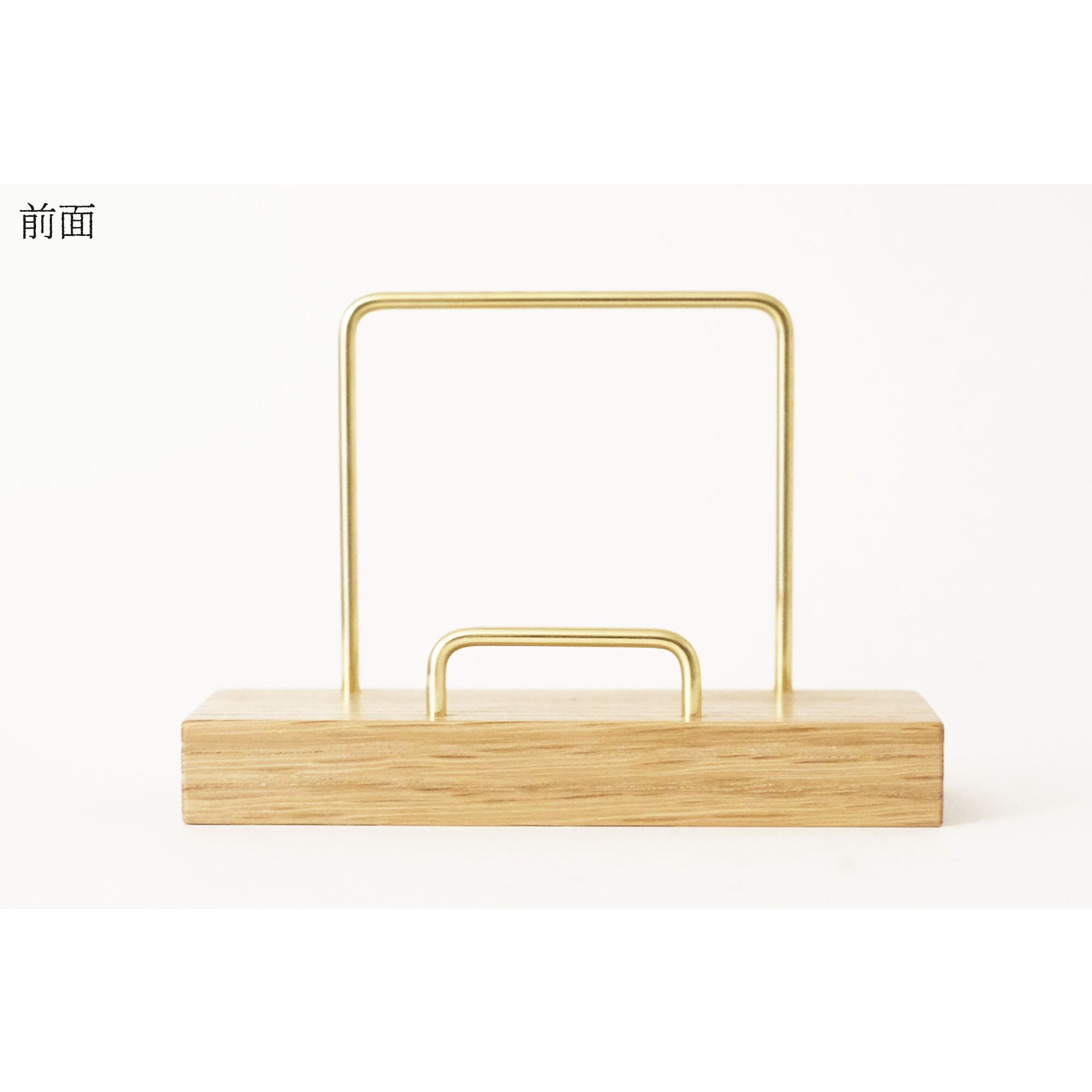 真鍮とホワイトオークのカードスタンド(曲げタイプ 縦横兼用) No4