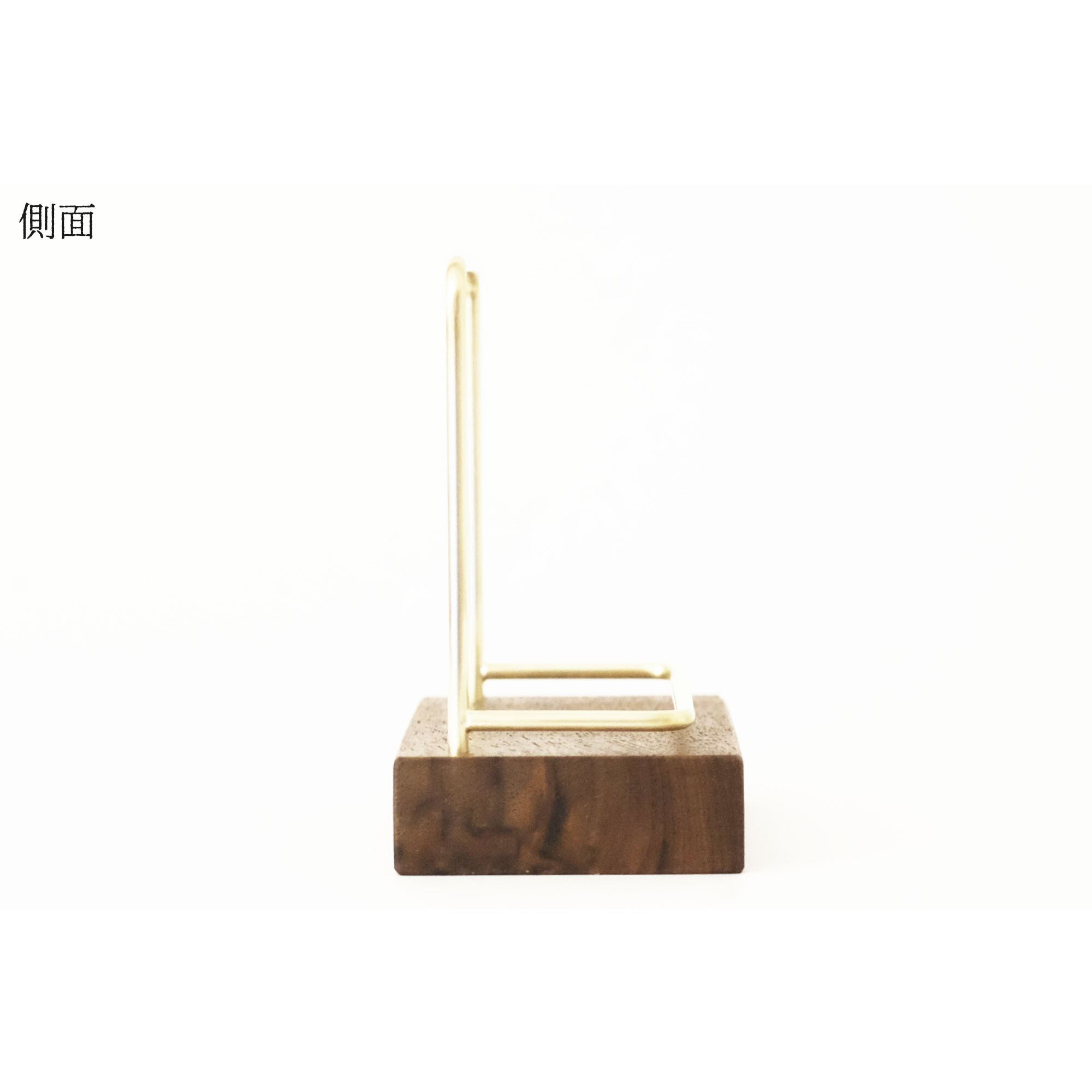 真鍮とウォールナットのカードスタンド(Fタイプ 彫金 縦置き) No27