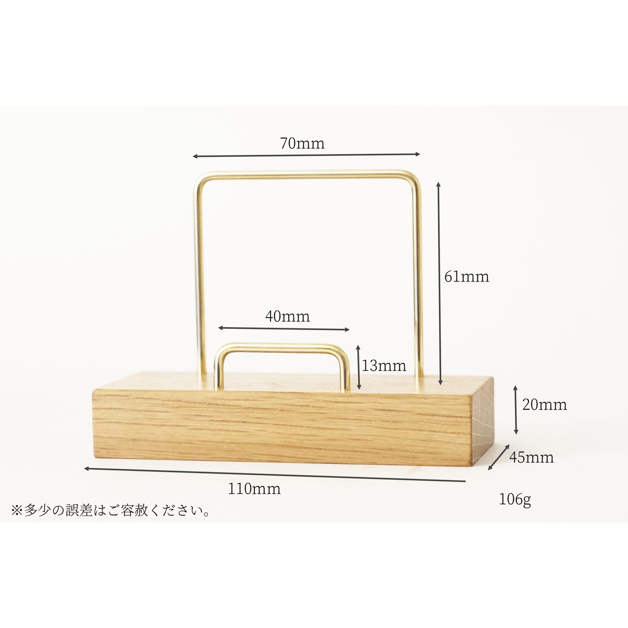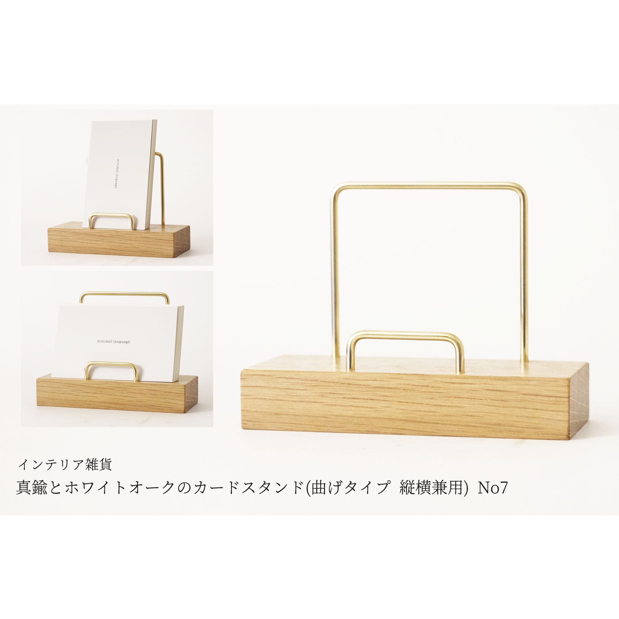 真鍮とホワイトオークのカードスタンド(曲げタイプ 縦横兼用) No7
