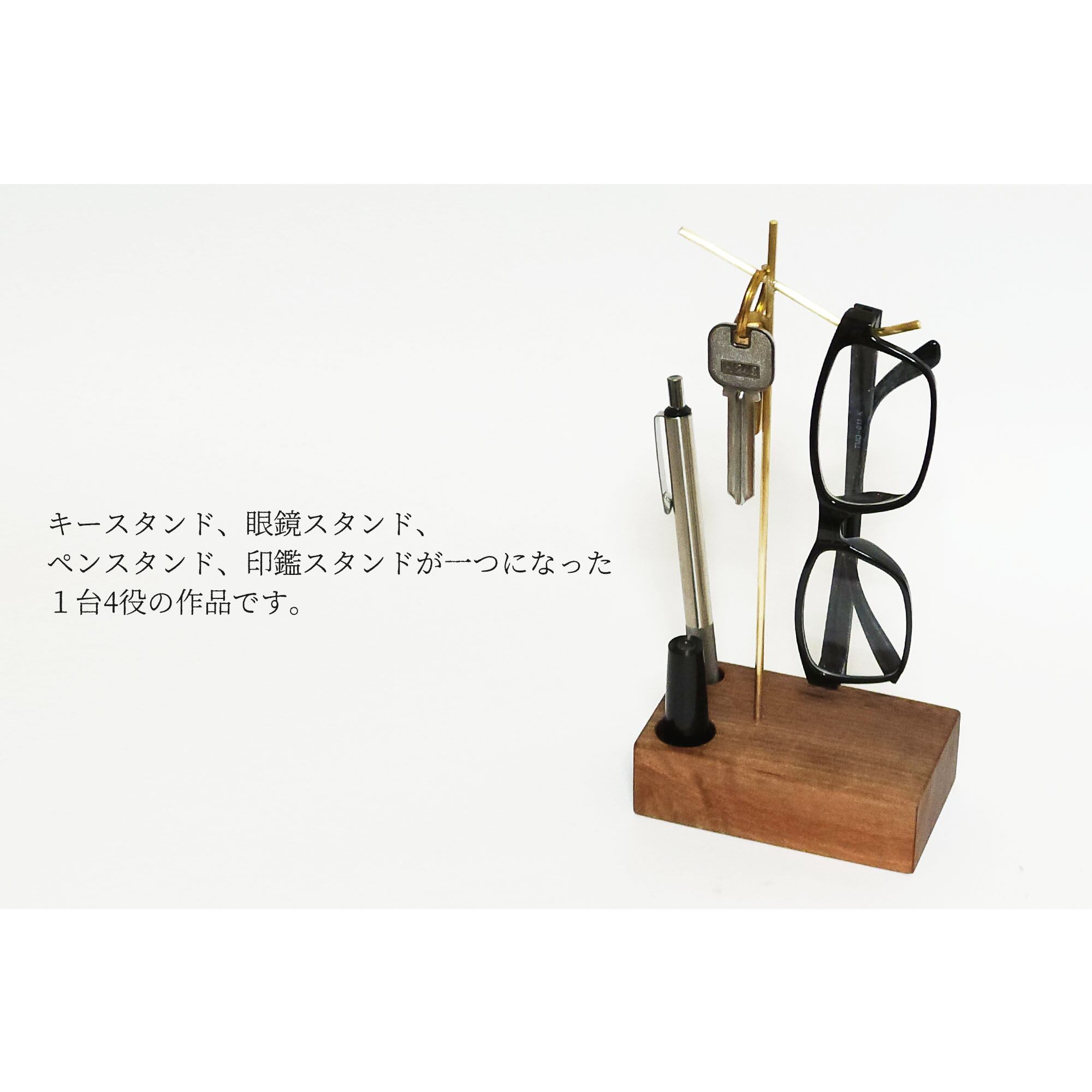 名称はキースタンドとなっていますが、眼鏡、ペン、印鑑も置ける1台4役のスタンドをなっています。