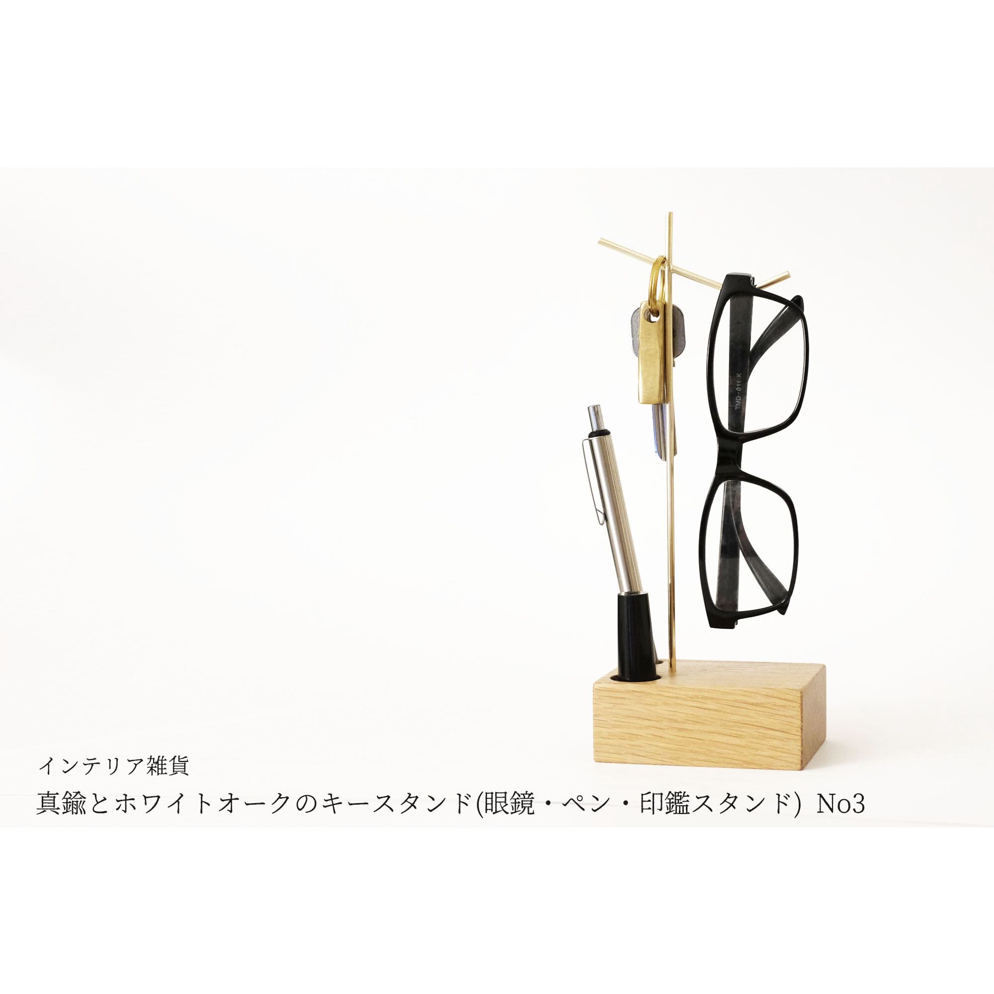 真鍮とホワイトオークのキースタンド(眼鏡・ペン・印鑑スタンド) No3